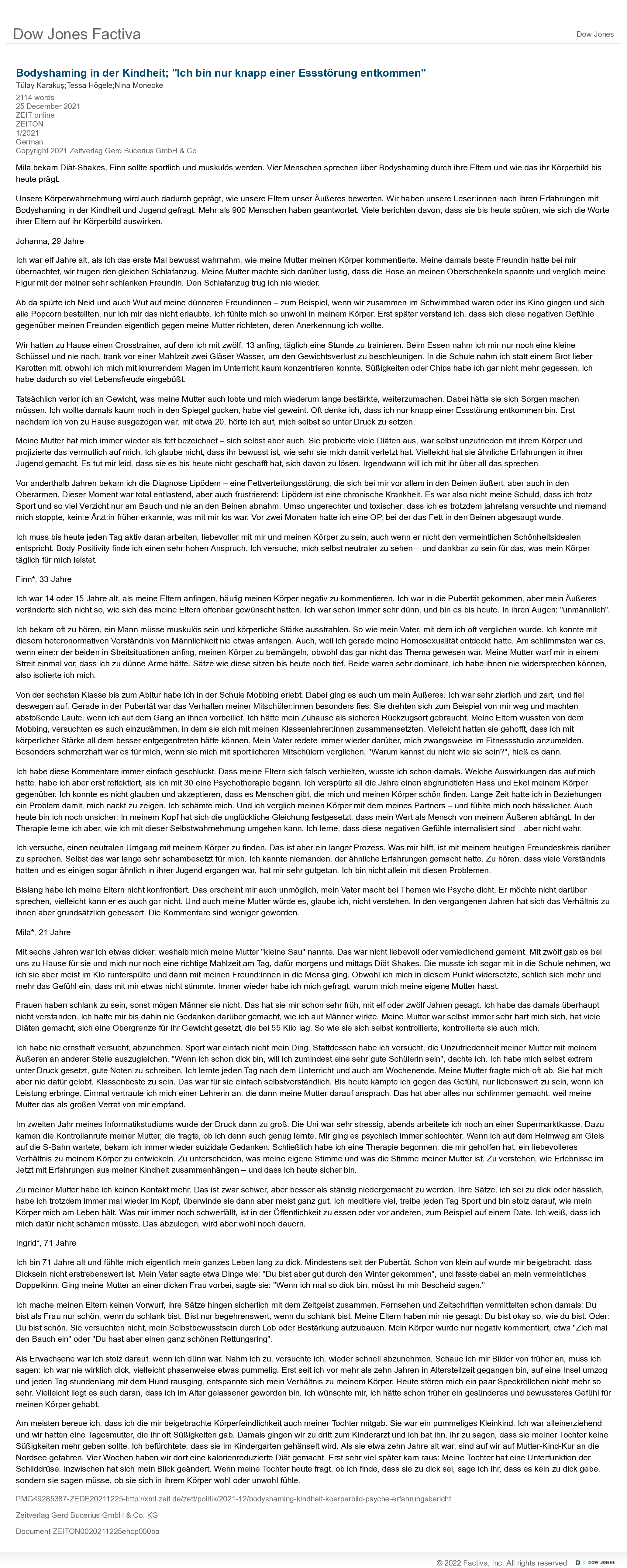 «Bodyshaming in der Kindheit» (Die Zeit)