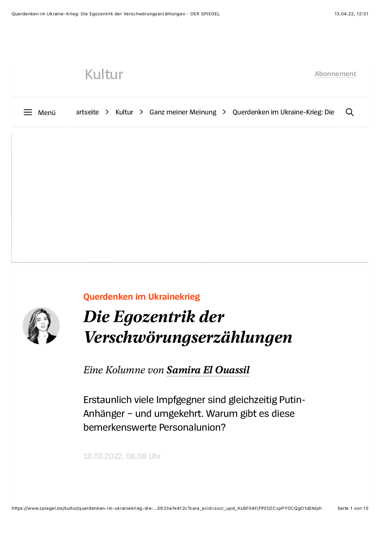 Artikel veröffentlicht auf Spiegel am 18. März 2022