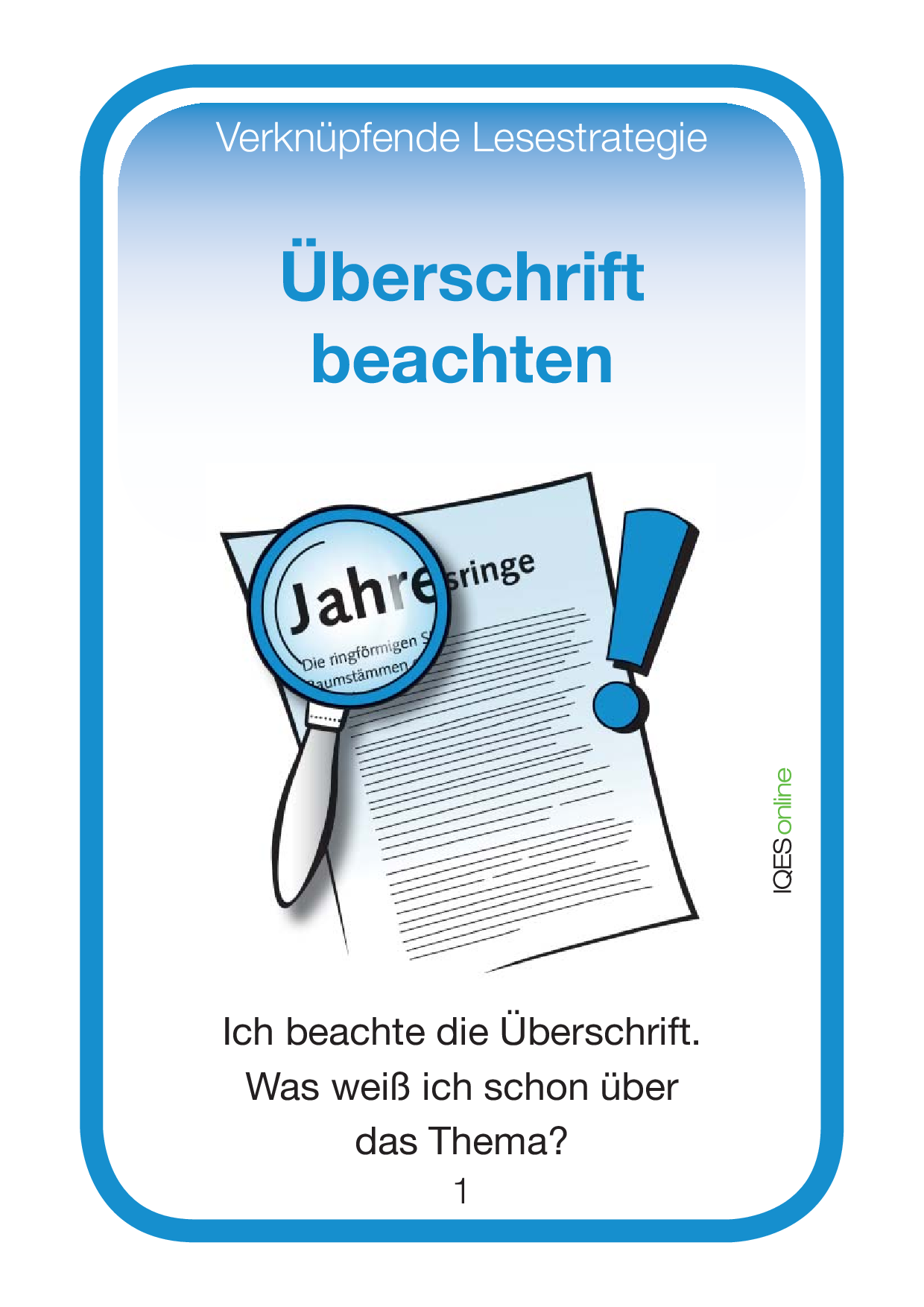 In diesem Dokument befindeen sich Kleinplakate im A4-Format zu den 24 Lesestrategien. Im Klassenzimmer aufgehängt sind diese Plakate eine ständige Erinnerung für die Lernenden.