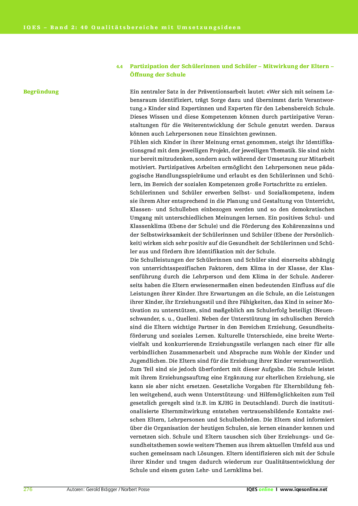 4.4 Partizipation der Schülerinnen und Schüler - Mitwirkung der Eltern - Öffnung der Schule
