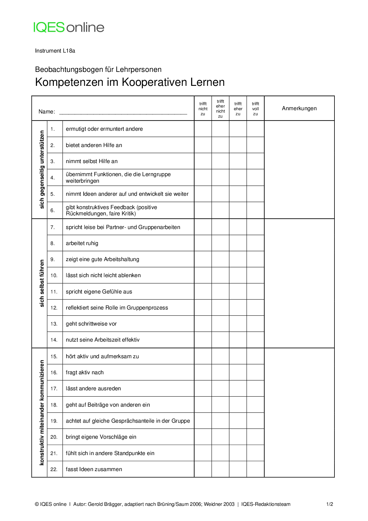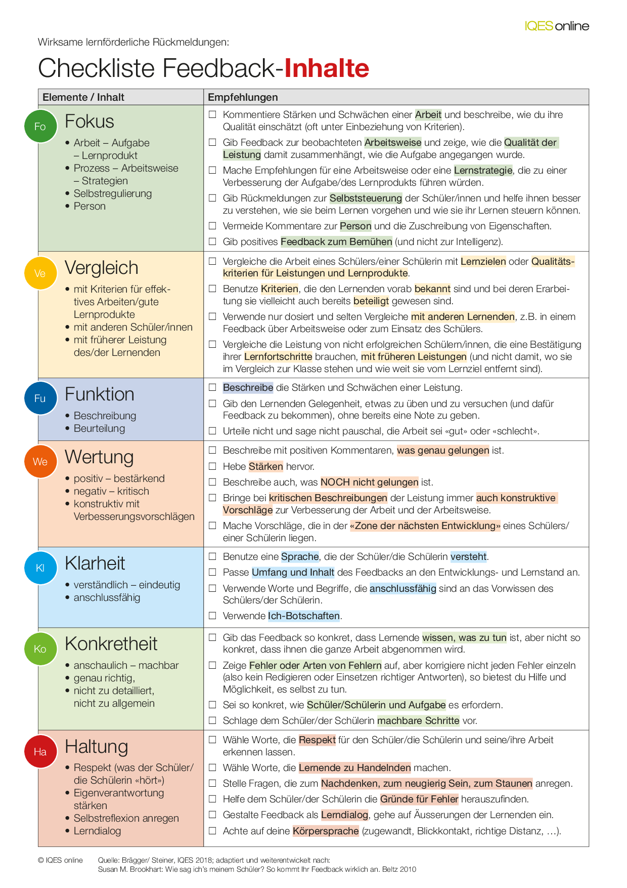 Herkunft:Gerold Brägger, Norbert Posse: Instrumente für die Qualitätsentwicklung und Evaluation in Schulen (IQES), Band 2. hep verlag, 2007. ISBN 9783039053483