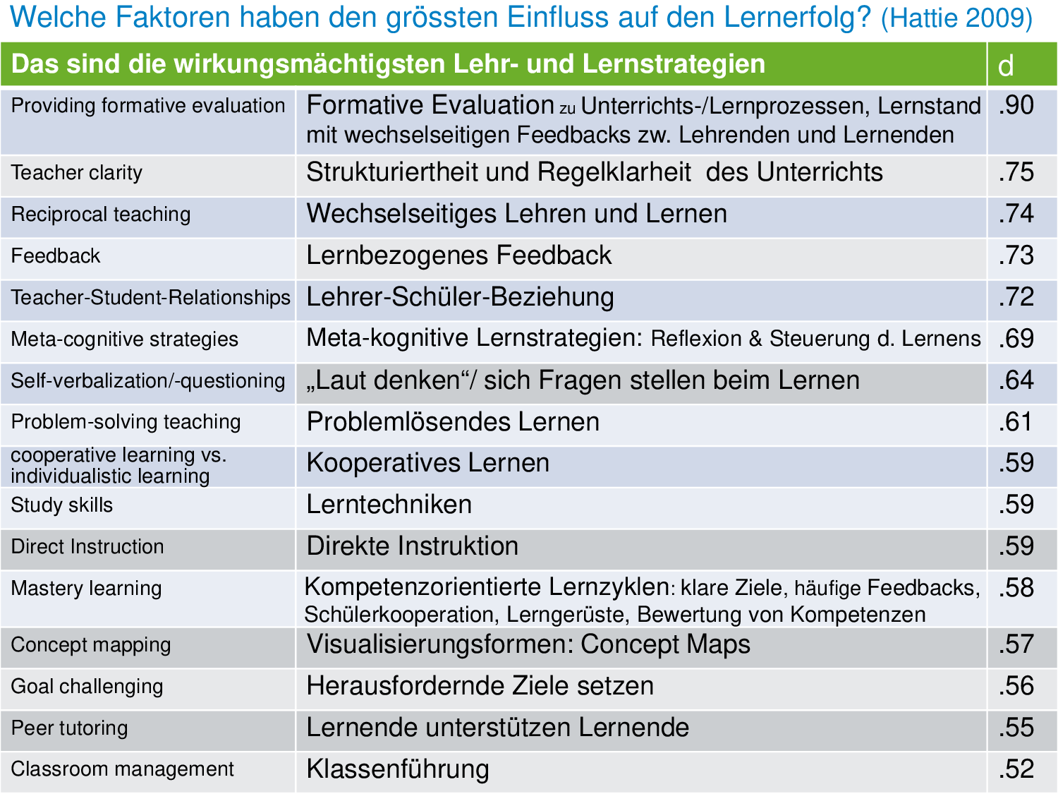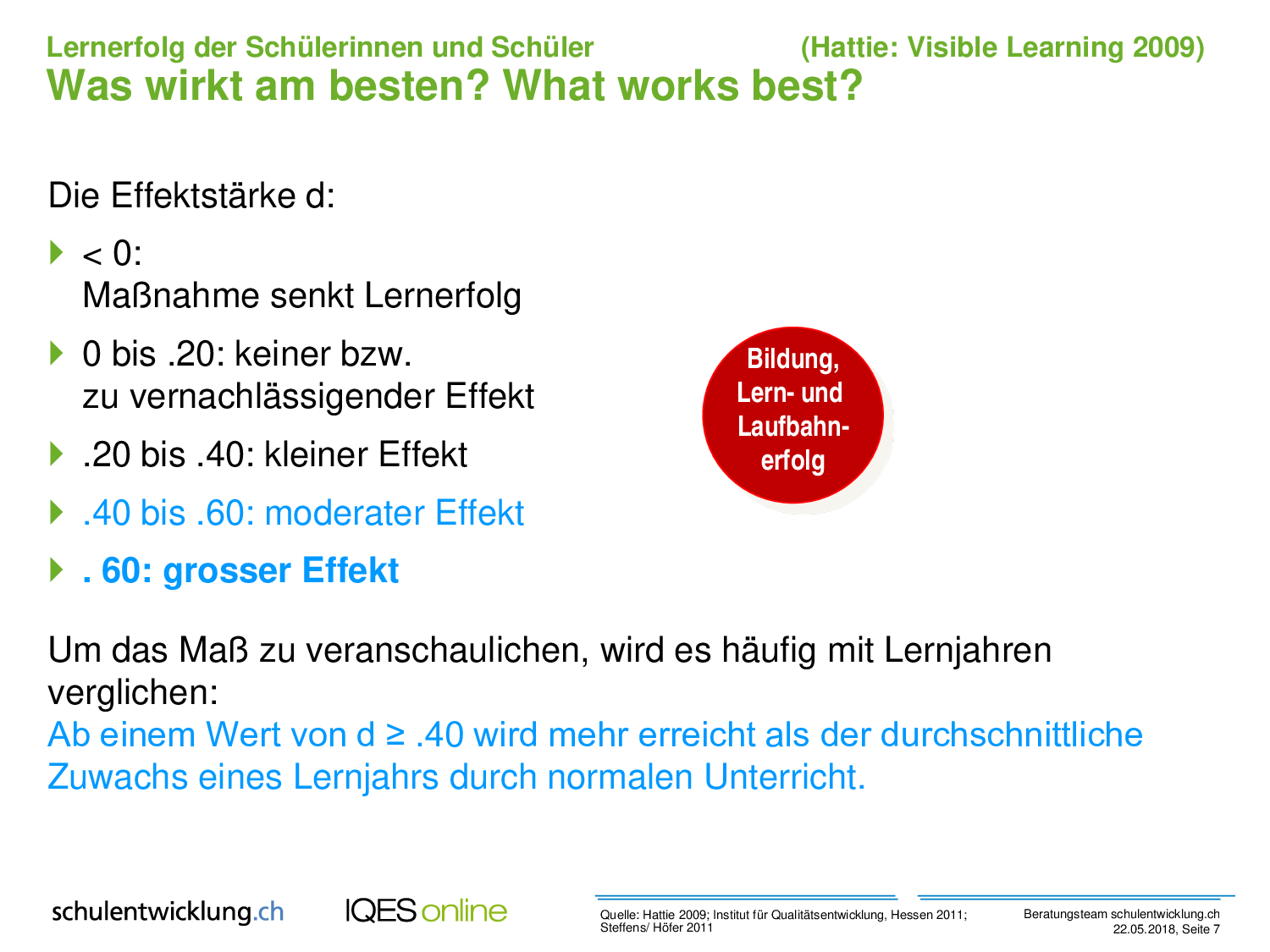 Herkunft:Gerold Brägger, Norbert Posse: Instrumente für die Qualitätsentwicklung und Evaluation in Schulen (IQES), Band 1. hep verlag, 2007. ISBN 9783039053483