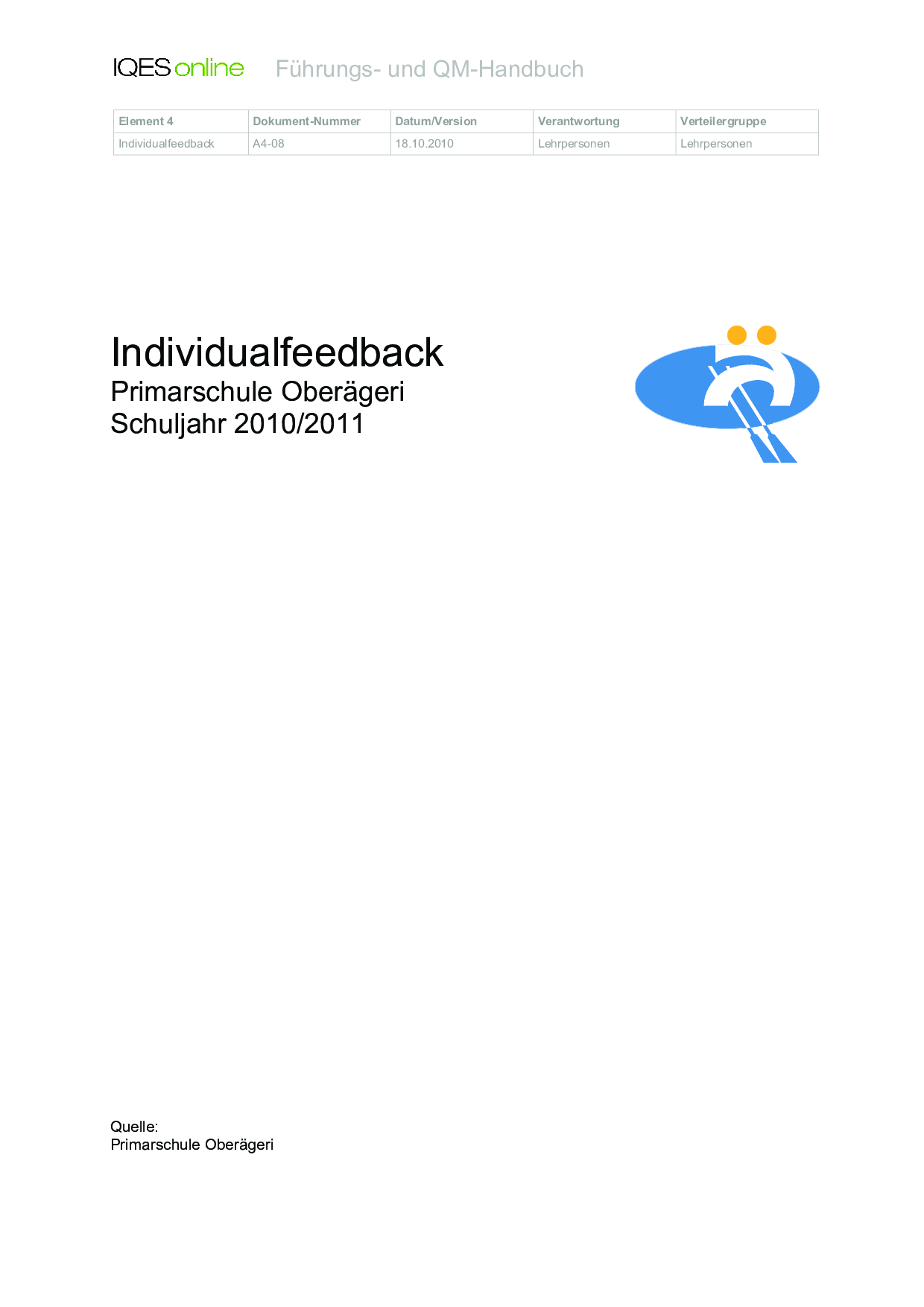 Hier wird das Konzept für Individualfeedbacks der Schule Oberägeri vorgestellt. Dabei werden Rahmenbedingungen und Hilfsmittel, Auswertung der Feedbacks sowie kollegiale Beratung thematisiert.