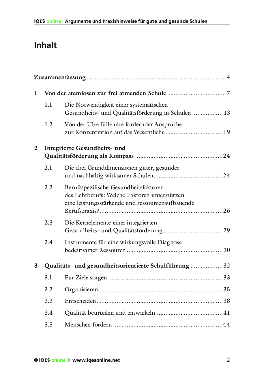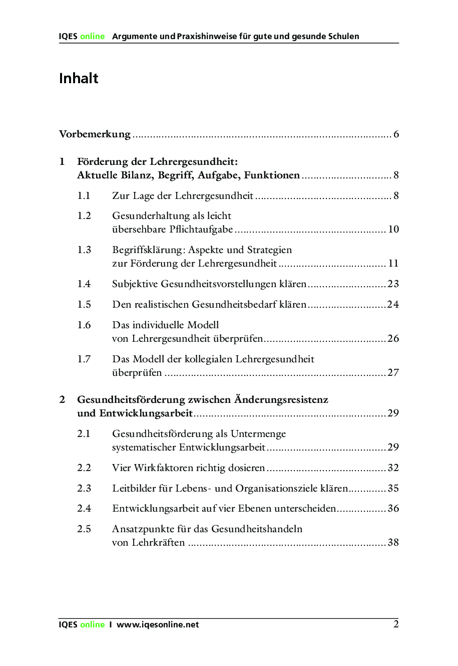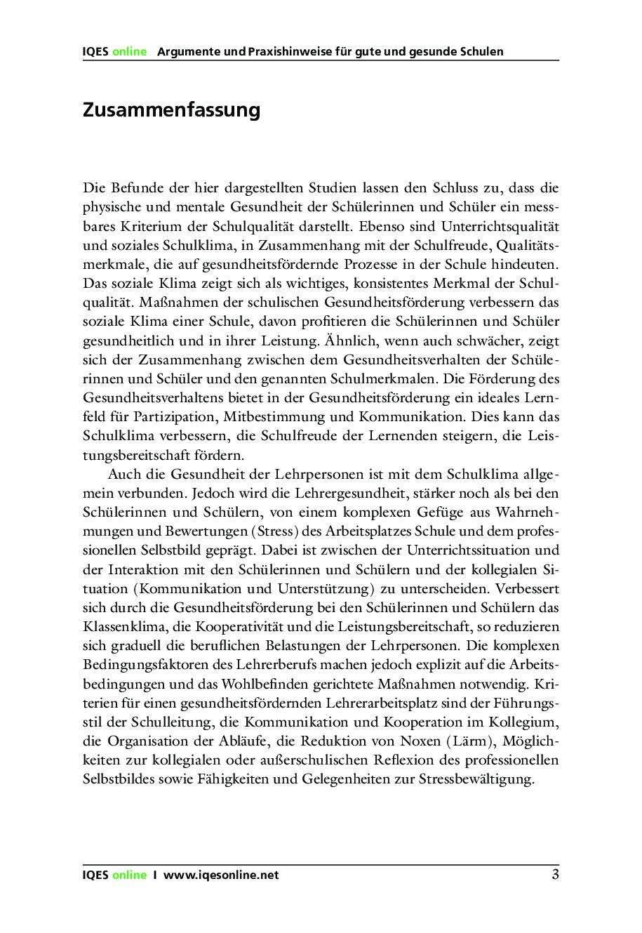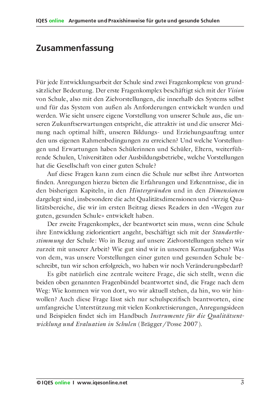 Eine gute, gesunde Schule lässt sich nur als eine gemeinsame Errungenschaft von Schulleitung und Lehrerschaft realisierbar. Das IQES-Handbuch zeigt Wege auf, wie eine sowohl qualitäts- wie auch gesundheitsorientierte Schulförderung erreicht werden kann.
