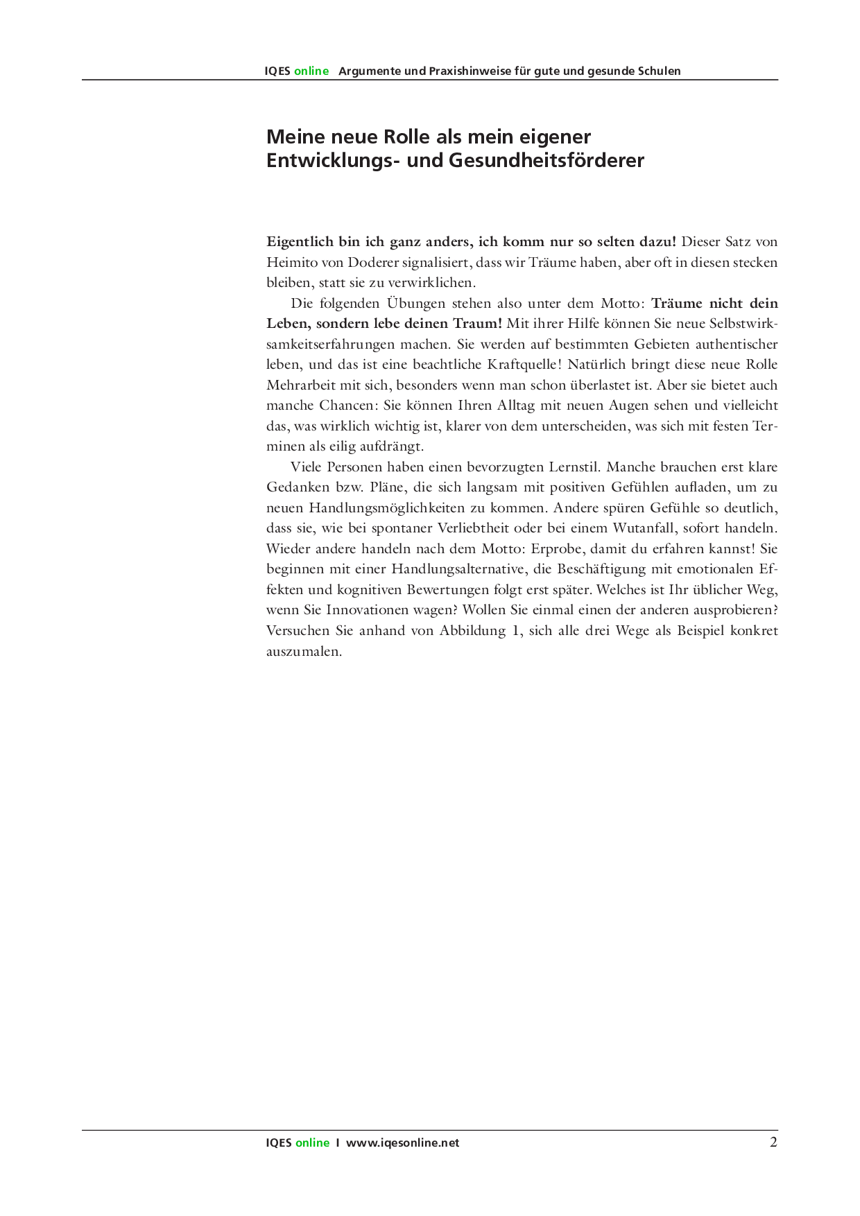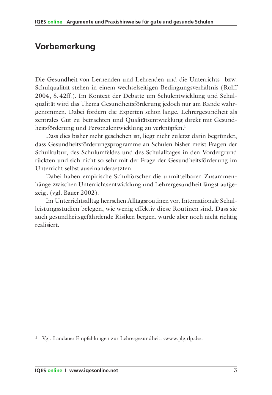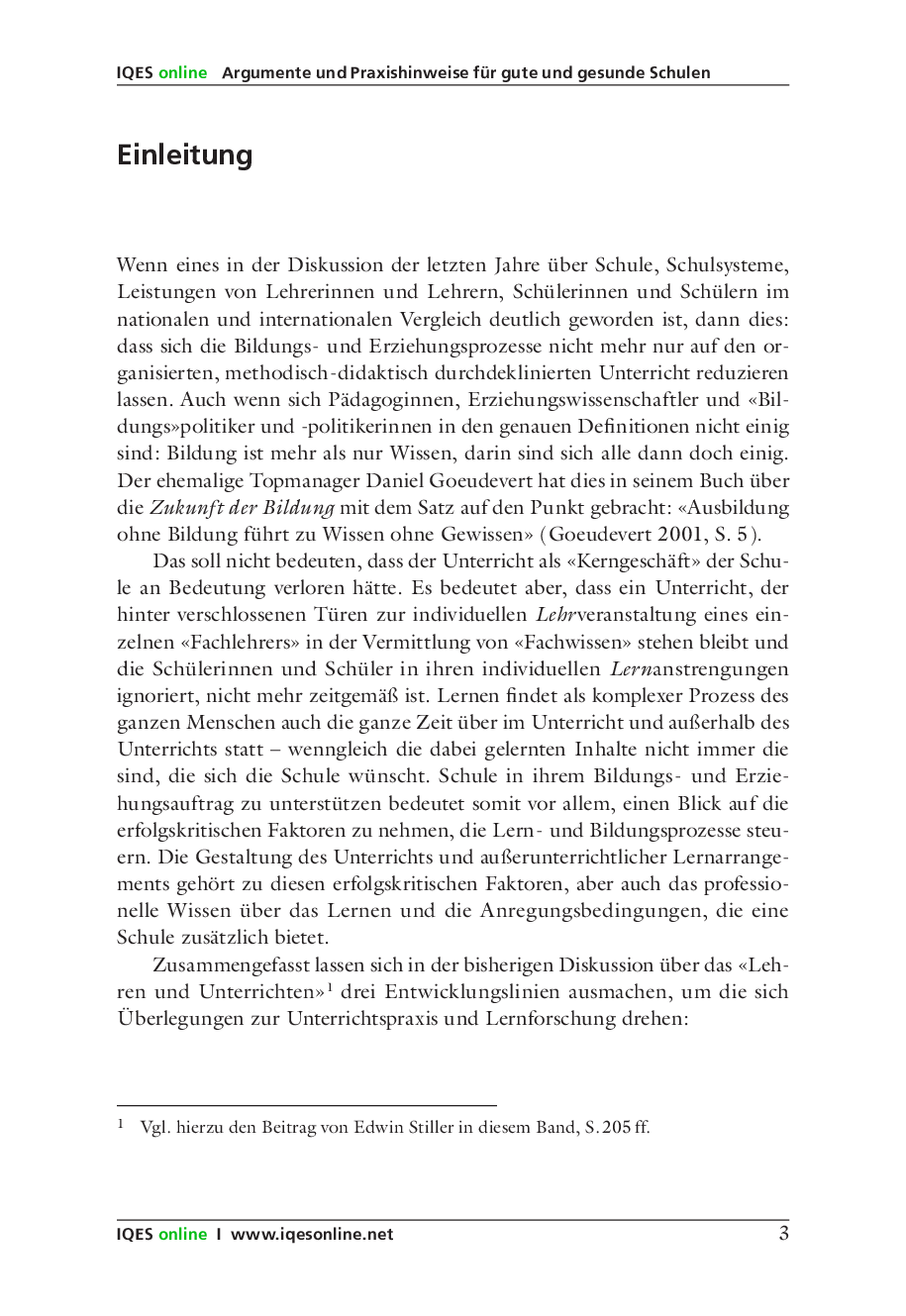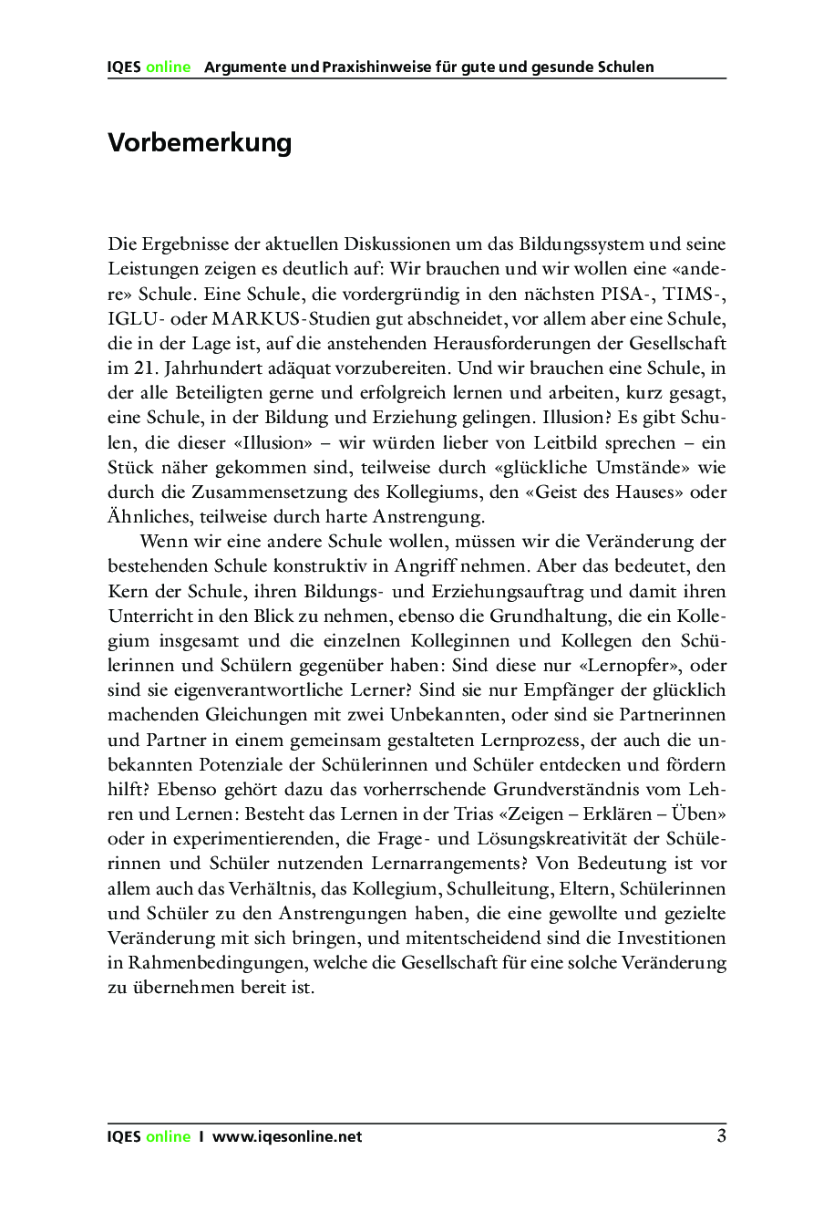 Eine gute, gesunde Schule lässt sich nur als eine gemeinsame Errungenschaft von Schulleitung und Lehrerschaft realisierbar. Das IQES-Handbuch zeigt Wege auf, wie eine sowohl qualitäts- wie auch gesundheitsorientierte Schulförderung erreicht werden kann.