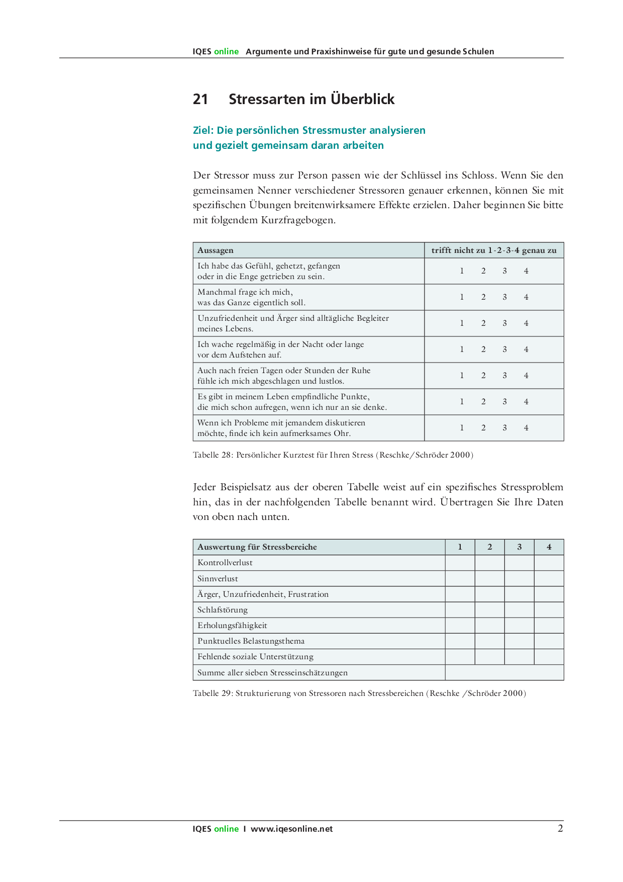 Dieses Dokument bietet zahlreiche Übungen und umfassendes Hintergrundwissen zum Thema Stress für Lehrpersonen an. Das eigene Stressverhalten kann identifiziert und aufgrund der Vorschläge im Artikel geändert werden.