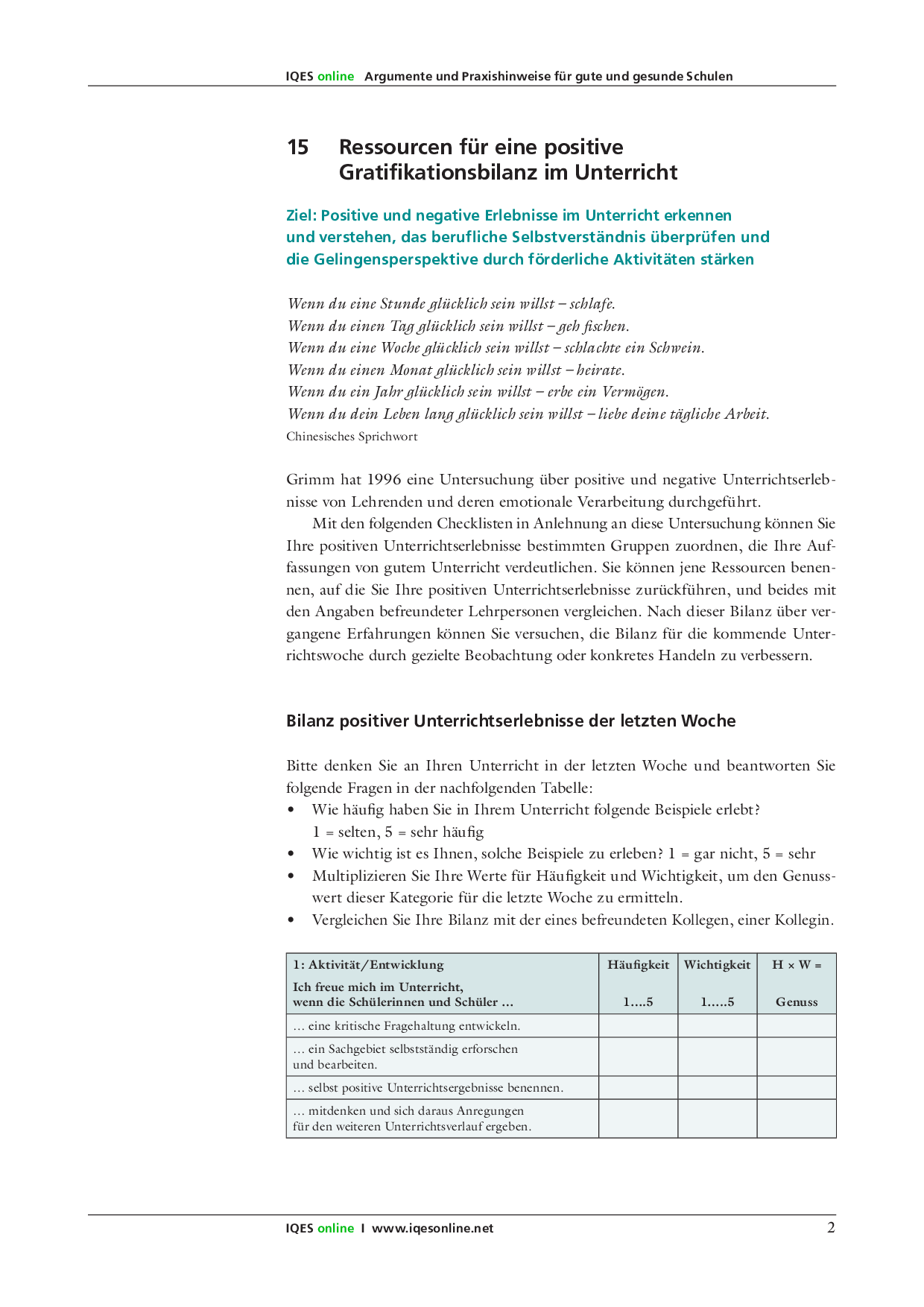 Denk- und Werkzeuge für eine salutogenetische Unterrichtsentwicklung II
