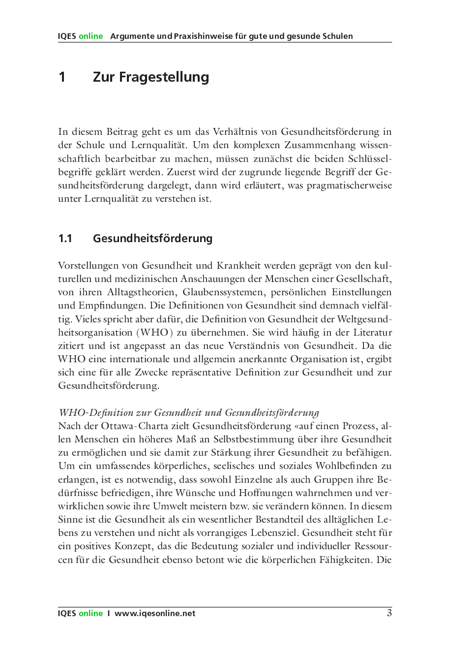Gesundheitsförderung und Lernqualität