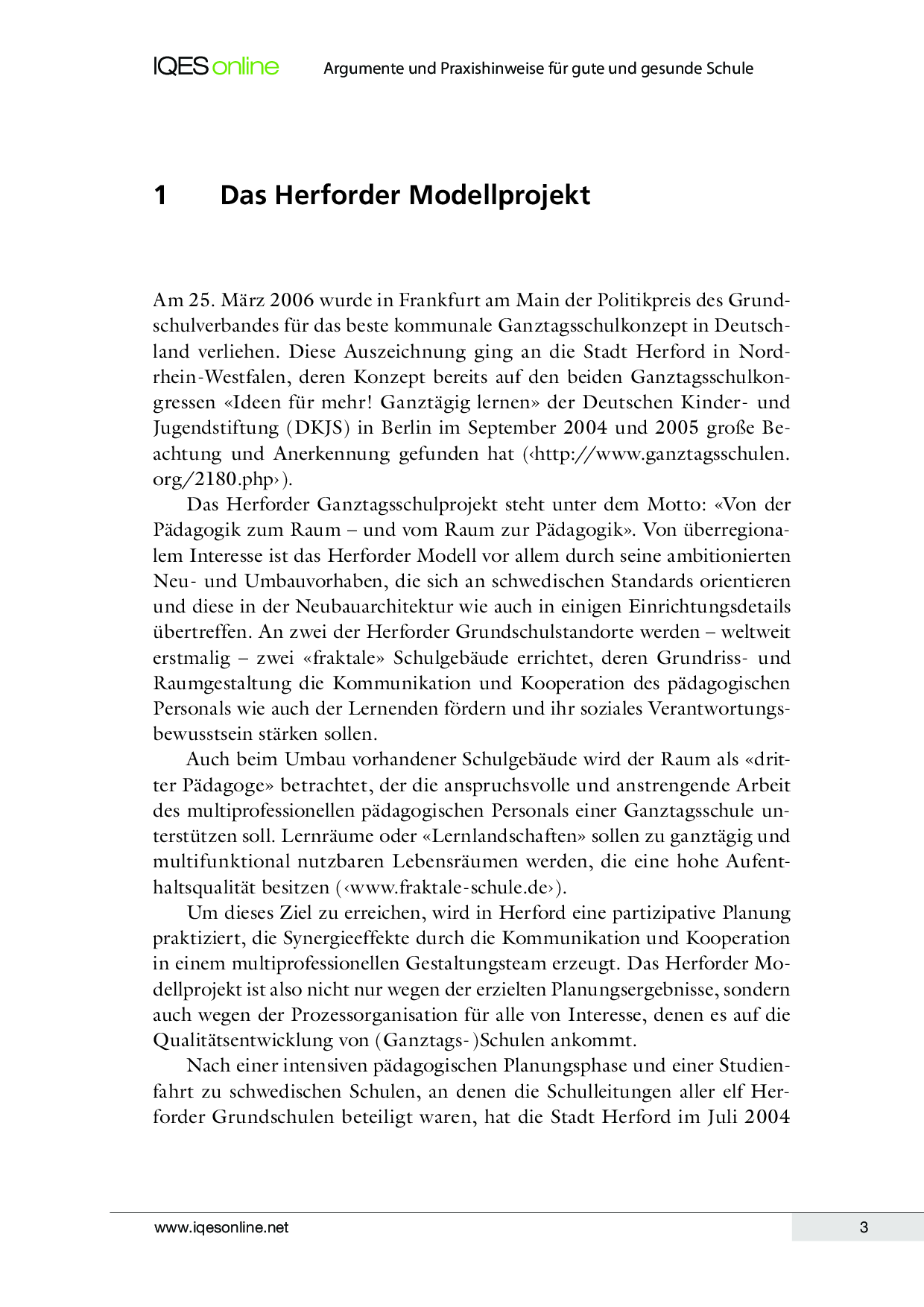 In diesem Werkstattbericht wird den Lesenden das Herforder Modell vorgestellt. Dabei geht es um den Ausbau guter und gesunder (Ganztags-) Schulen und wie dieser gelingen kann.