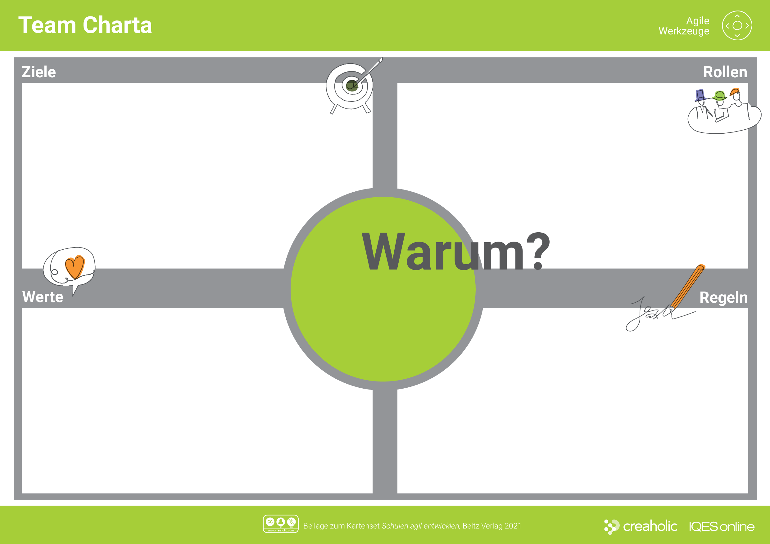 Agile Werkzeuge unterstützen sowohl auf Ebene der Teamzusammenarbeit an einer Schule als auch auf der Sachebene des Vorhabens durch umsetzungsorientierte Methoden. Sämtliche Werkzeuge werden im Team eingeführt, genutzt und bei Bedarf angepasst. Die kontinuierliche Nutzung von agilen Werkzeugen sowie die Reflexion darüber unterstützen das gemeinsame Lernen und Wachsen im Team.