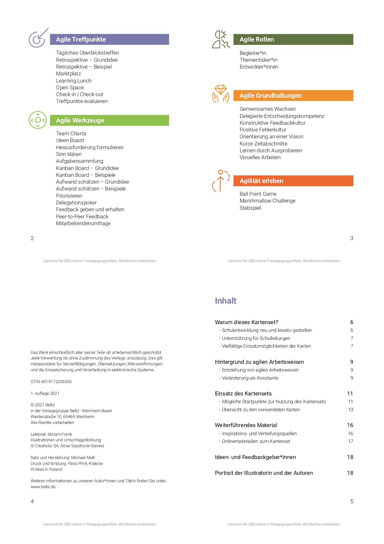 Welches sind die wichtigen Rollen und Grundhaltungen für agile Schulentwicklung? Welches sind geeignete Vorgehensweisen und Werkzeuge? Die Karten aus dem Kartenset »Schule agil entwickeln« liefern hier die passenden Denk- und Umsetzungsanstöße.