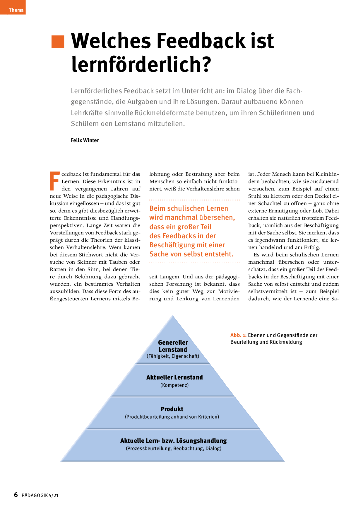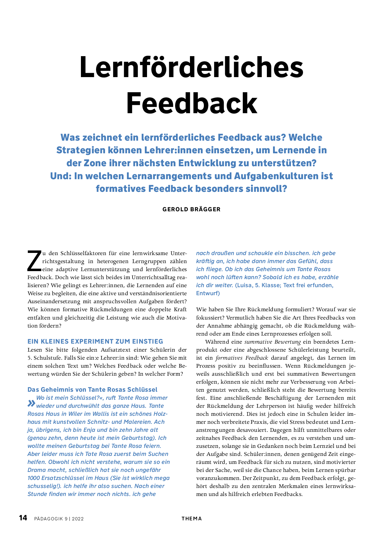 Was zeichnet ein lernförderliches Feedback aus? Welche Strategien können Lehrer:innen einsetzen, um Lernende in der Zone ihrer nächsten Entwicklung zu unterstützen? Und: In welchen Lernarrangements und Aufgabenkulturen ist formatives Feedback besonders sinnvoll?