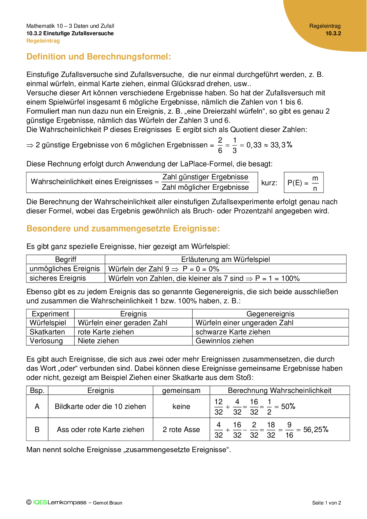 Lehrerschmidt: einstufiger Zufallsversuch – Wahrscheinlichkeitsrechnung – einfach erklärt