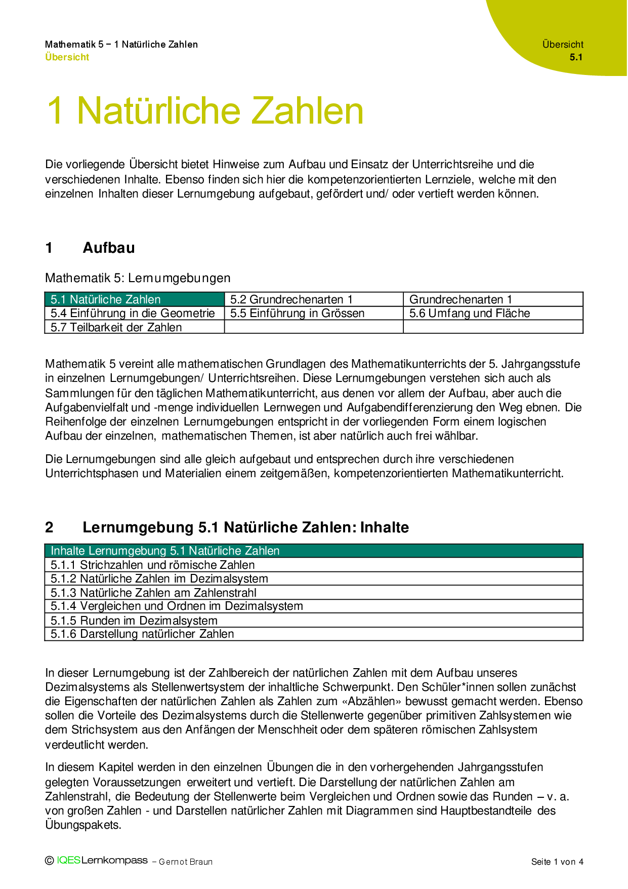 Lernziele und Inhalte: 5.1 Natürliche Zahlen