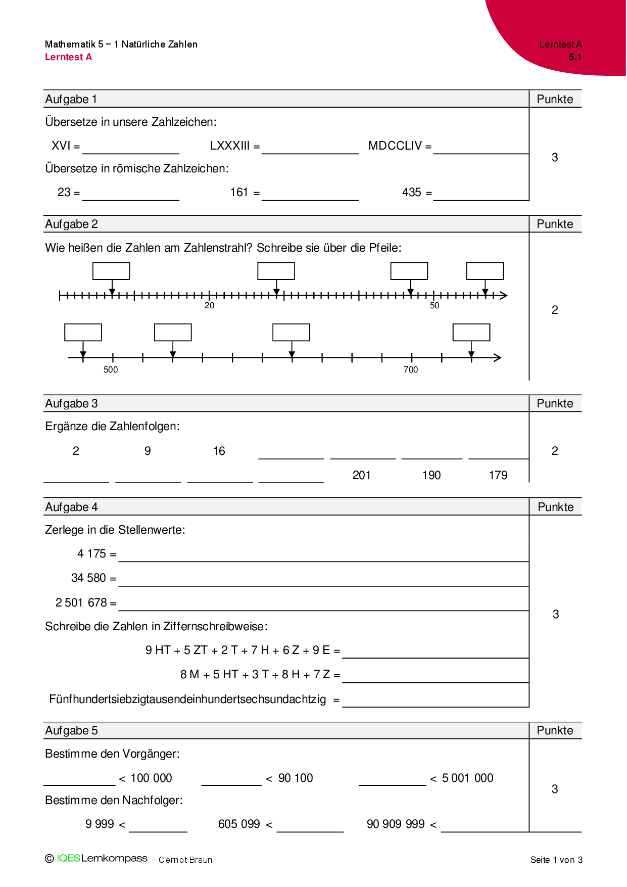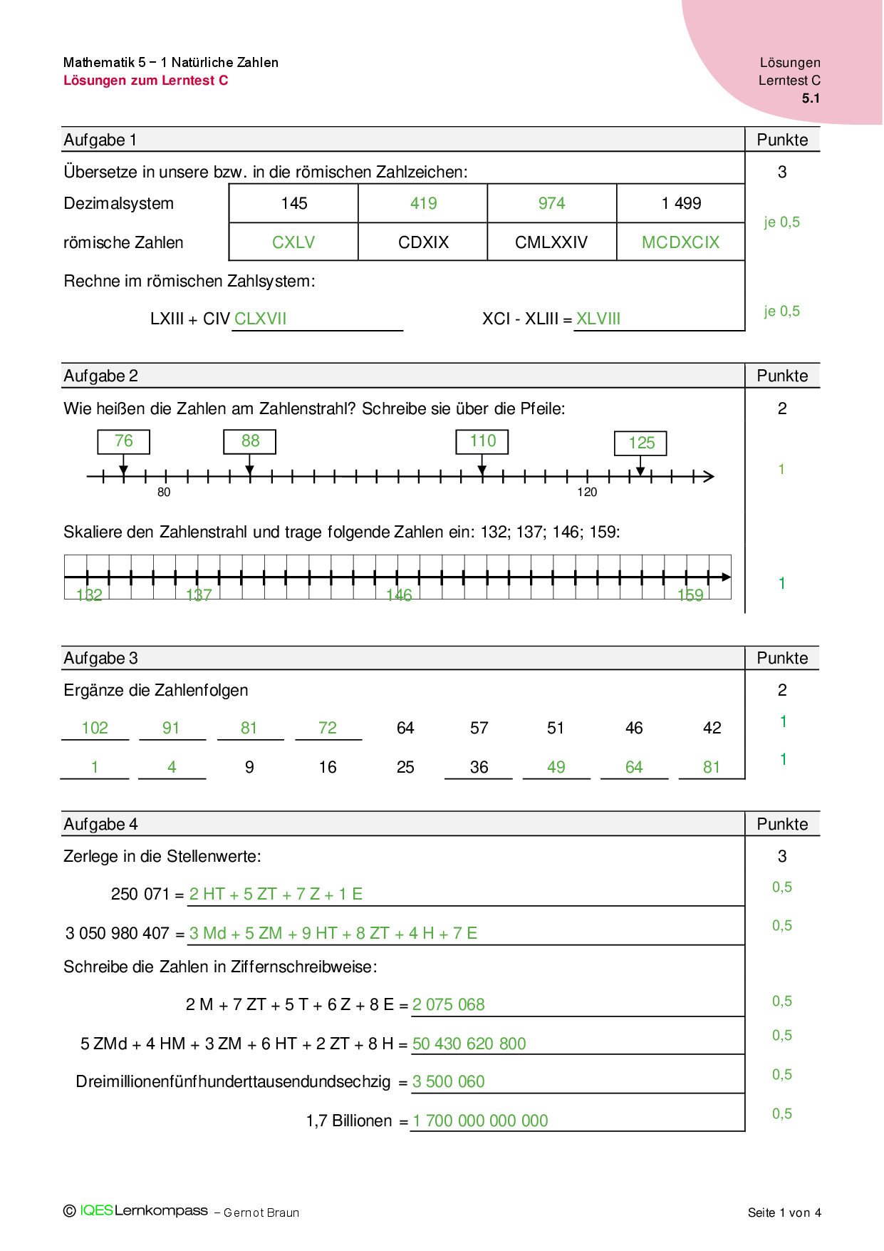 5.1 Natürliche Zahlen – Lösungen zum Lerntest C