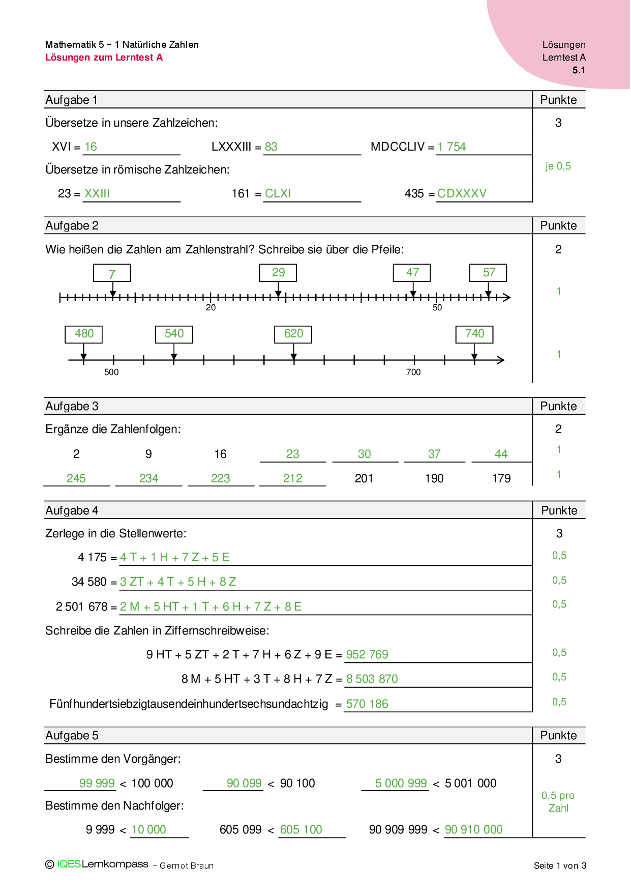 5.1 Natürliche Zahlen – Lösungen zum Lerntest A