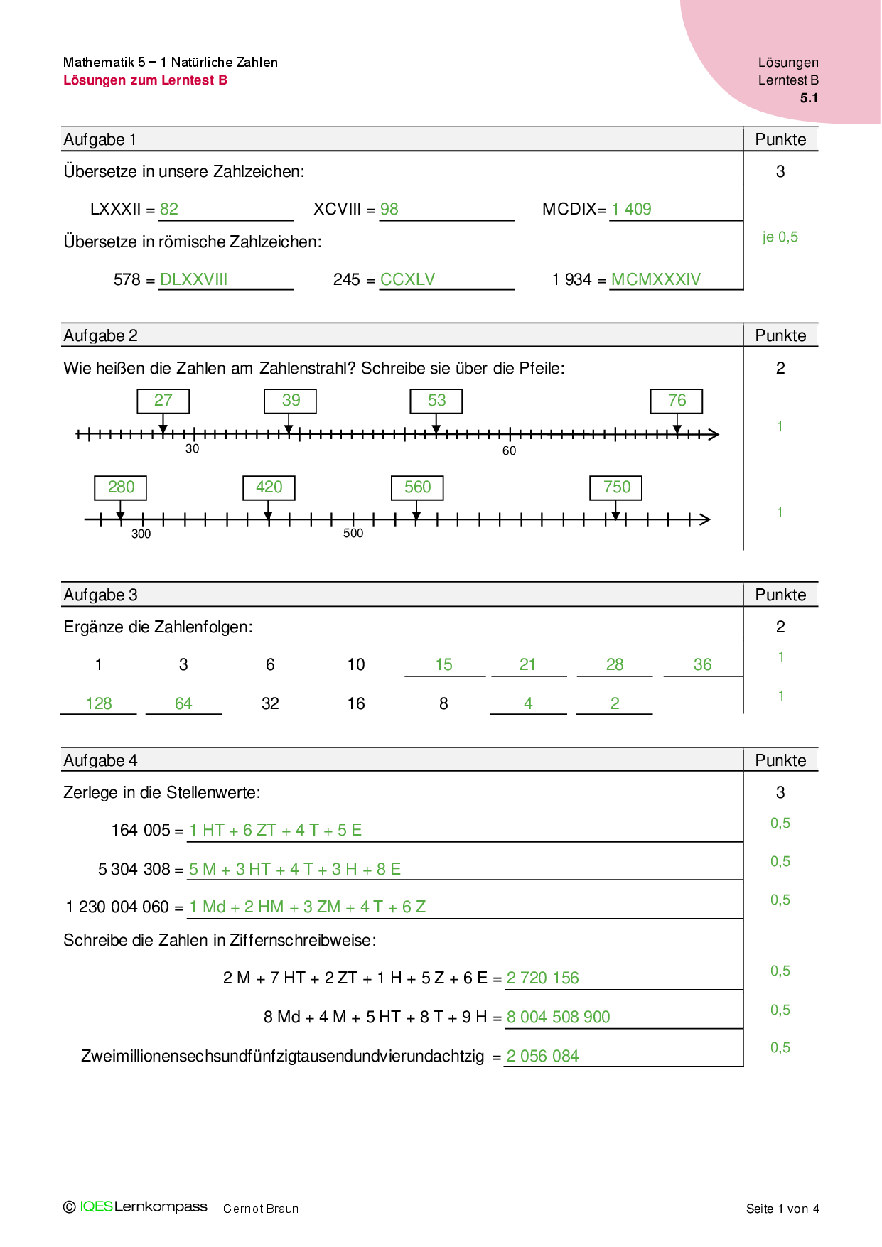 5.1 Natürliche Zahlen – Lösungen zum Lerntest B