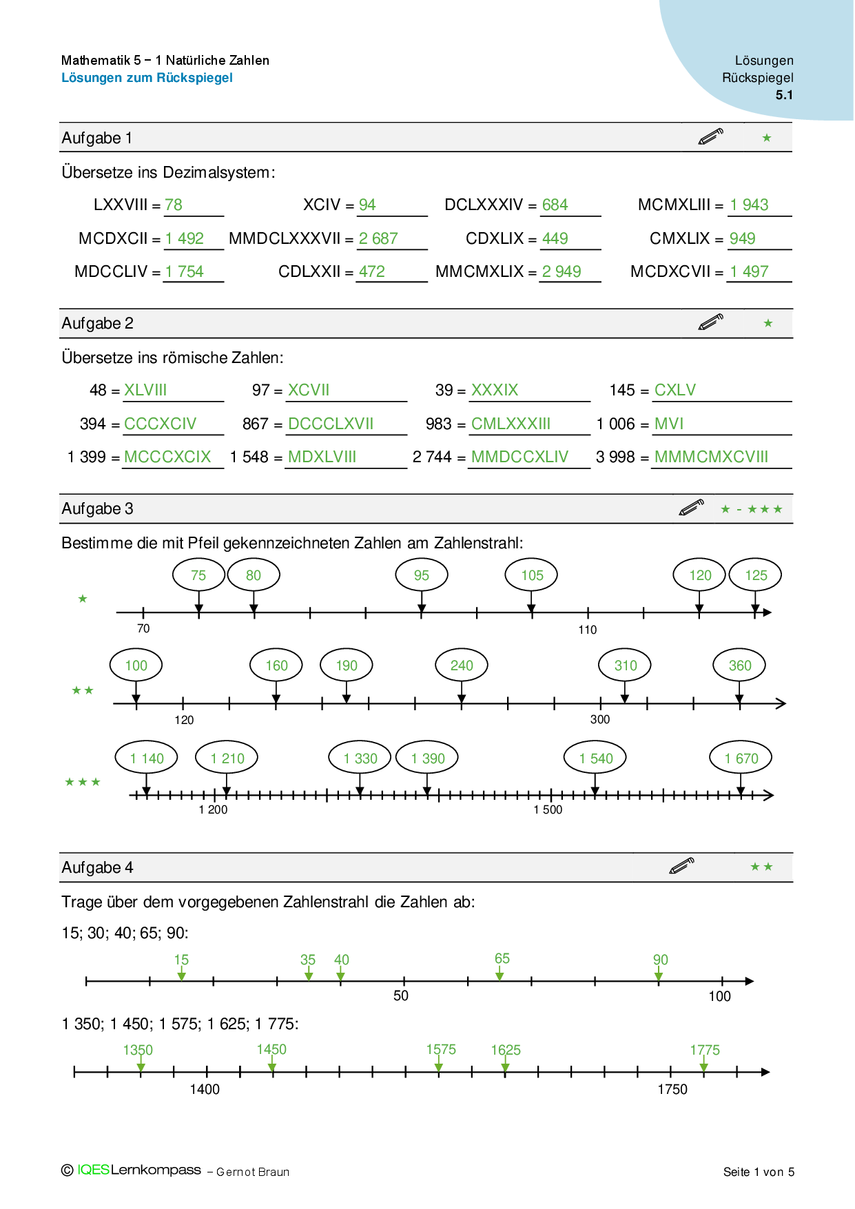 5.1 Natürliche Zahlen – Lösungen zum Rückspiegel