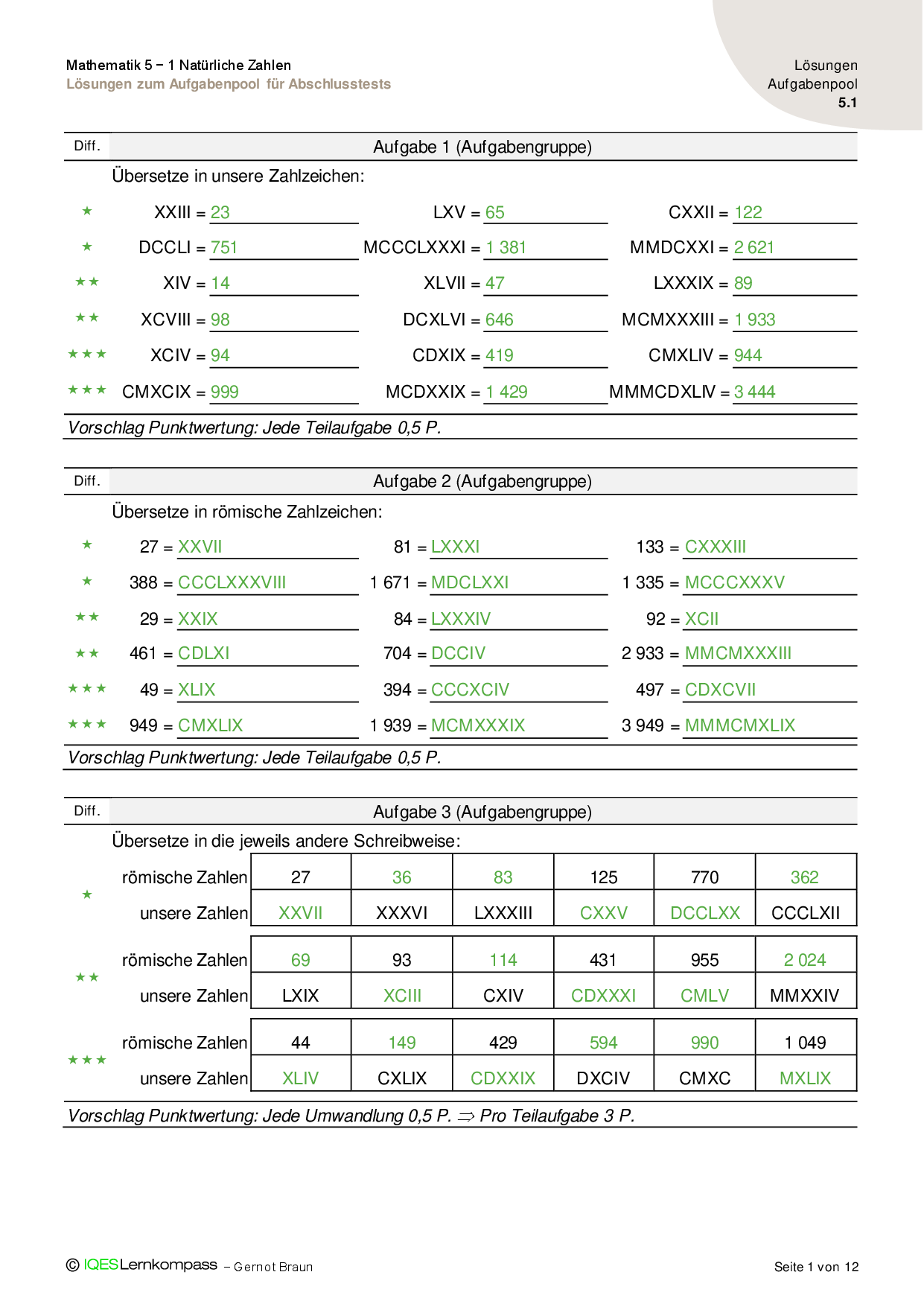 5.1 Natürliche Zahlen – Lösungen zum Aufgabenpool für Abschlusstests