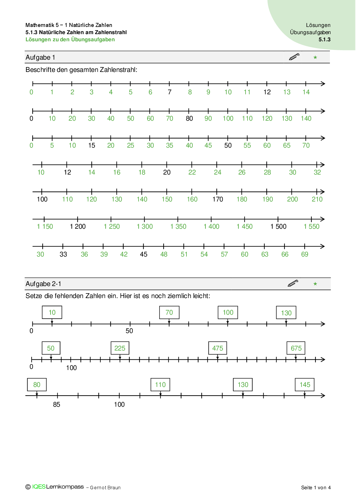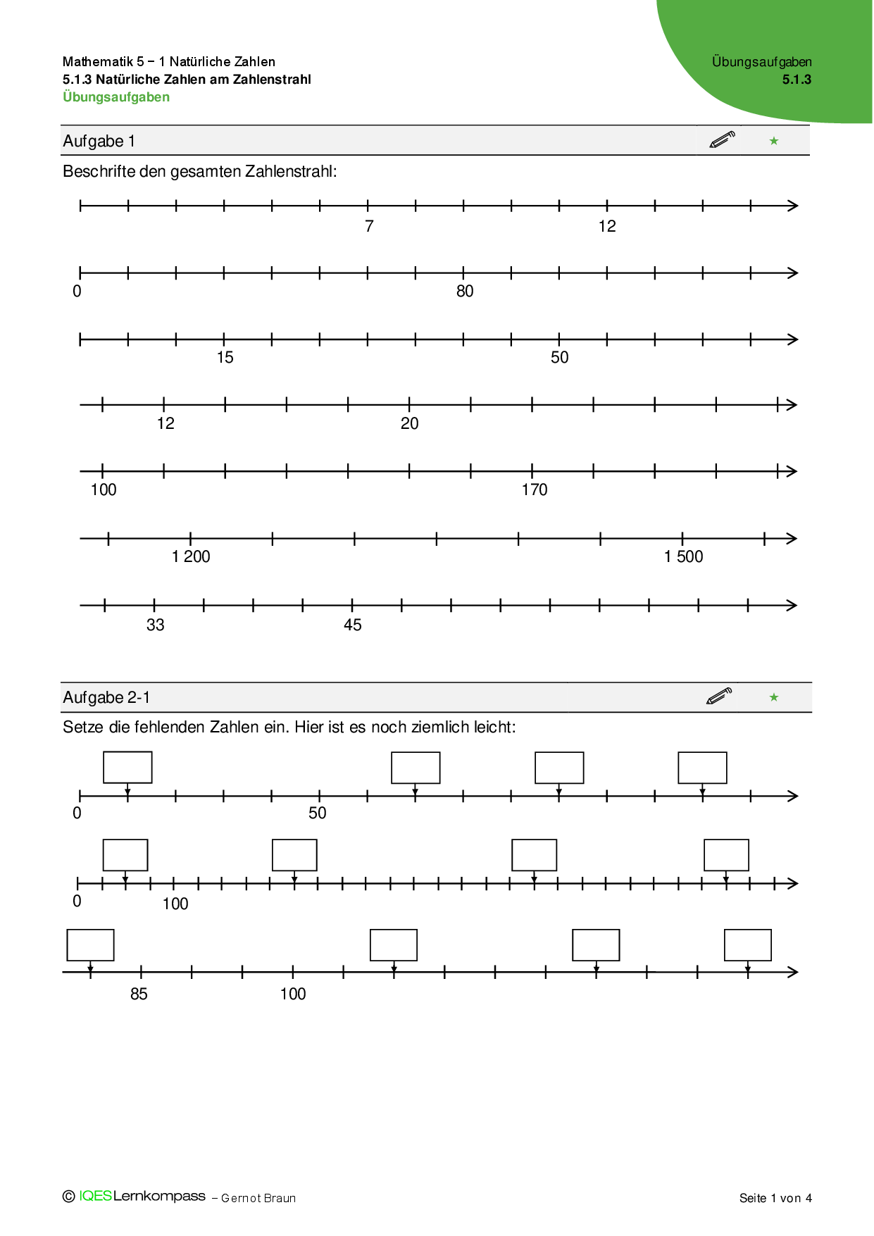5.1.3 Natürliche Zahlen am Zahlenstrahl – Übungsaufgaben mit Lösungen
