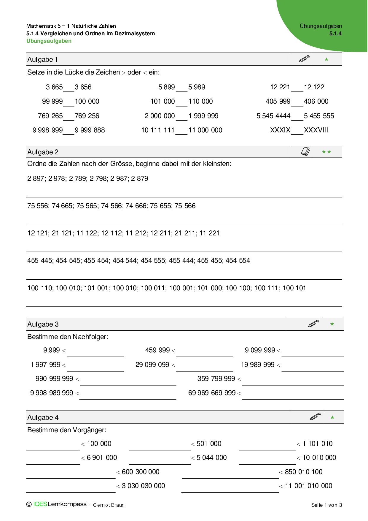 5.1.2 Natürliche Zahlen im Dezimalsystem – Übungsaufgaben