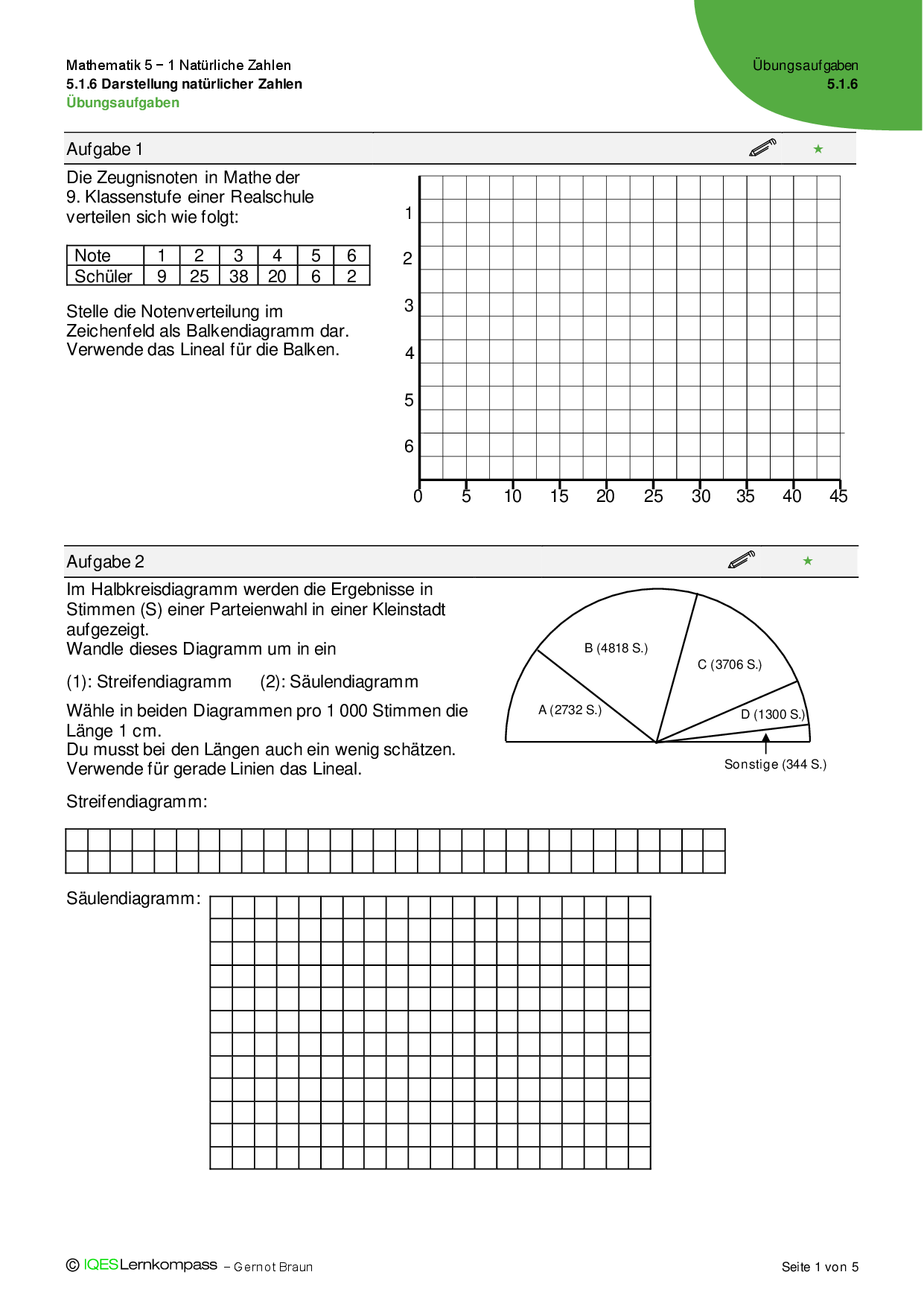 - Ich kann natürliche Zahlen in Tabellenform und als Diagramme darstellen.