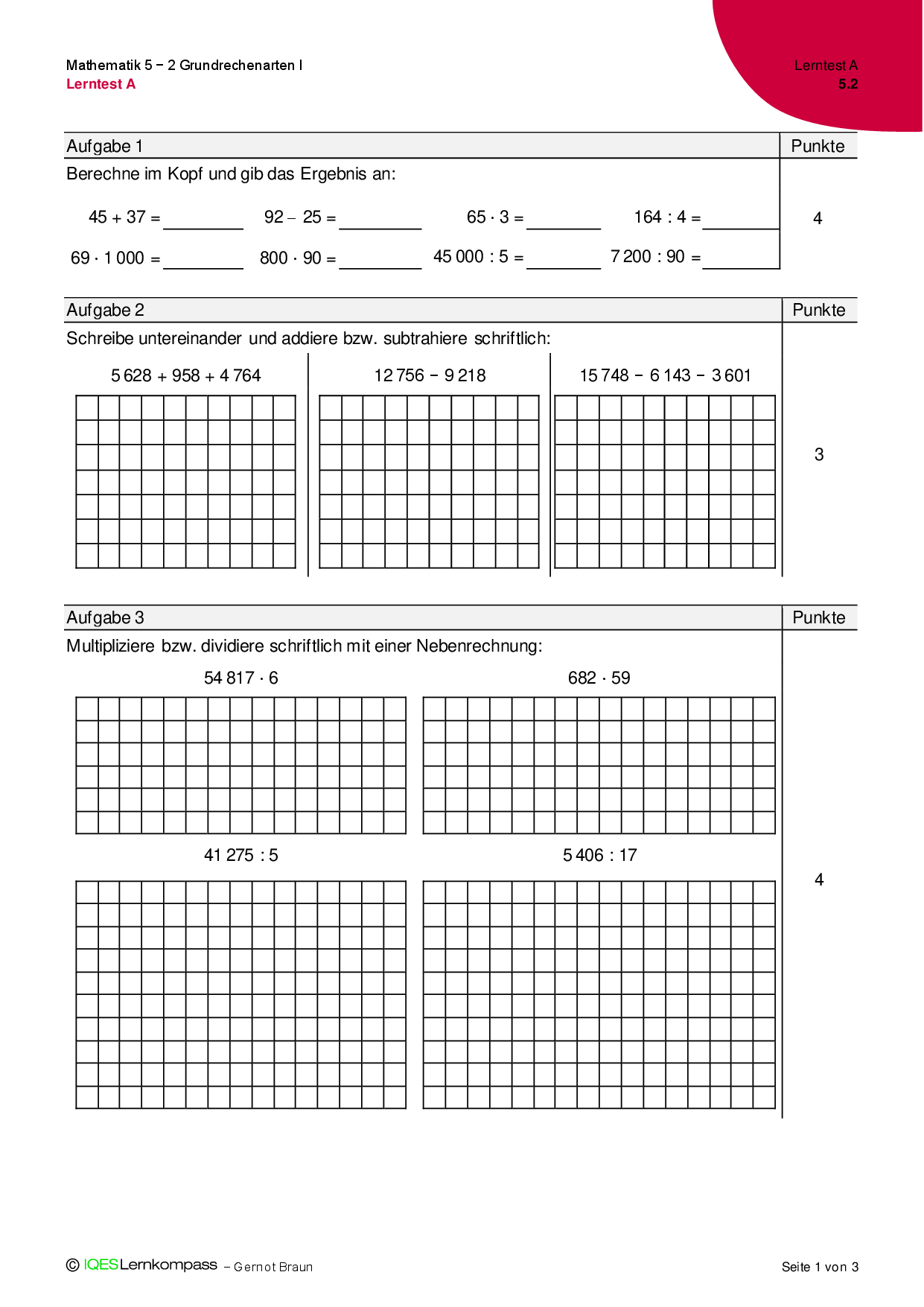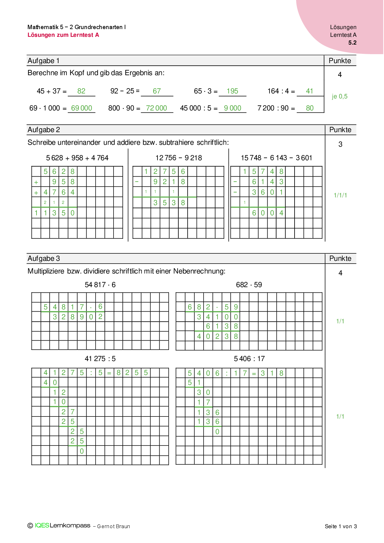 5.2 Grundrechenarten 1 – Lösungen zum Lerntest A