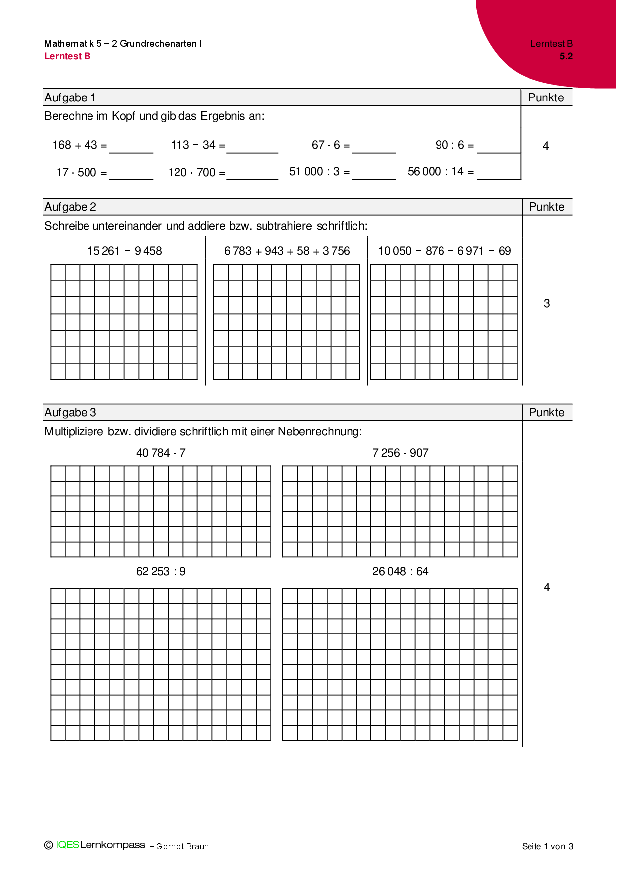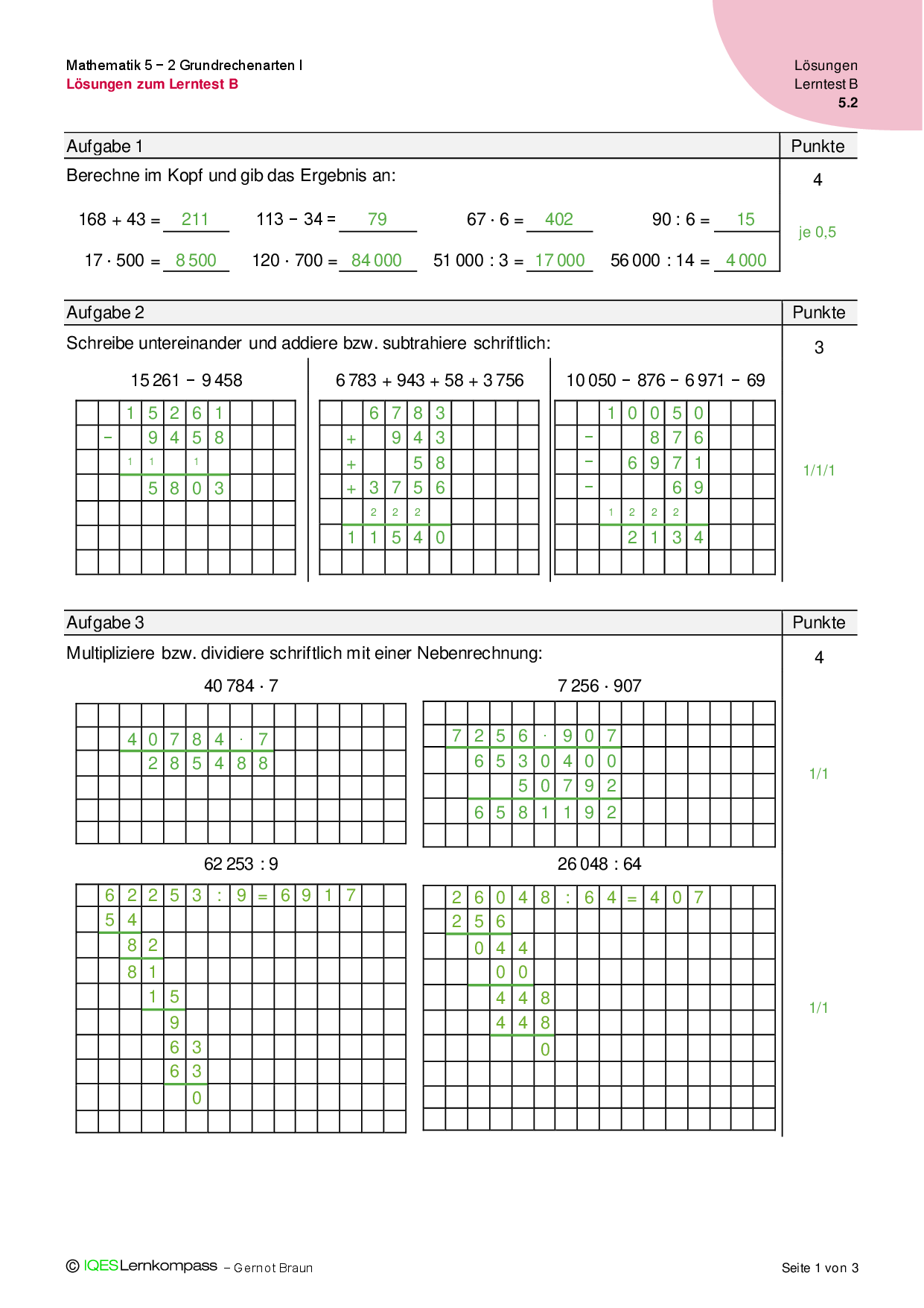 5.2 Grundrechenarten 1 – Lösungen zum Lerntest B