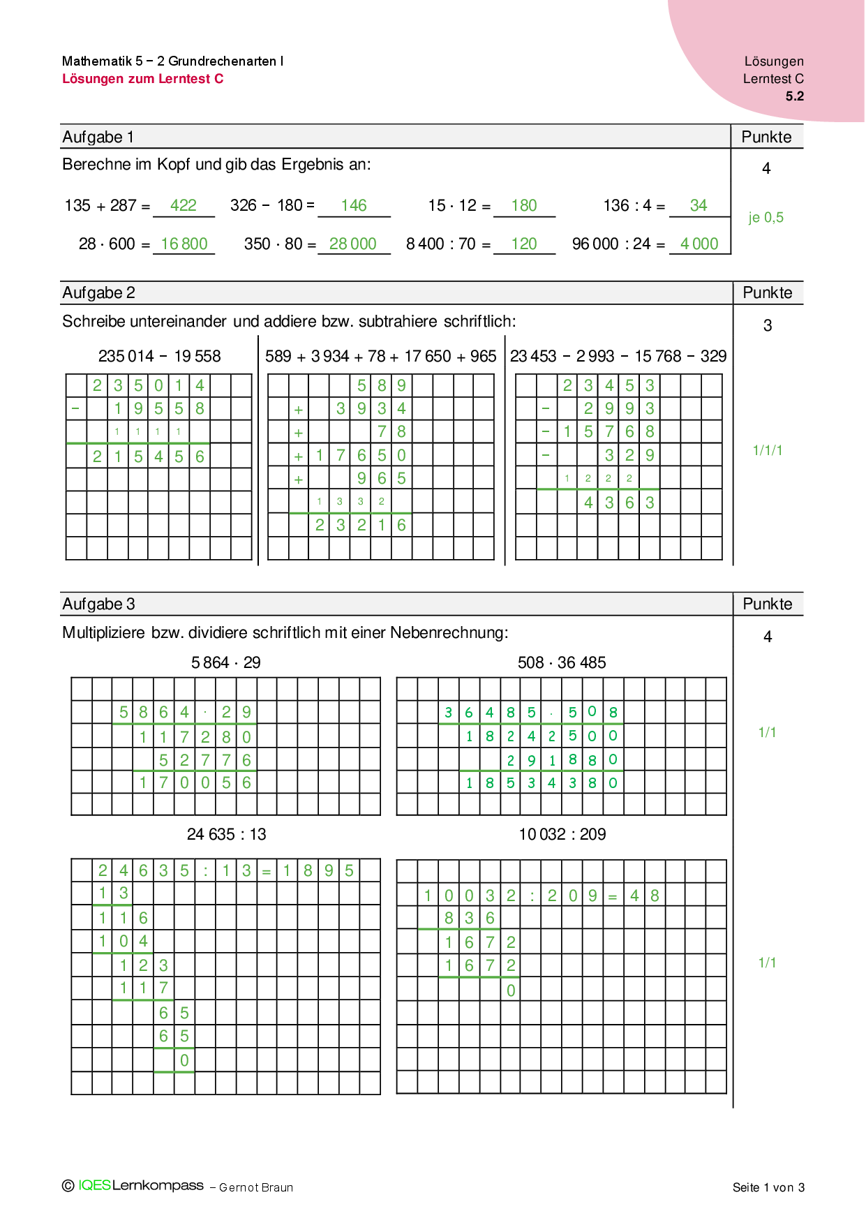 5.2 Grundrechenarten 1 – Lösungen zum Lerntest C