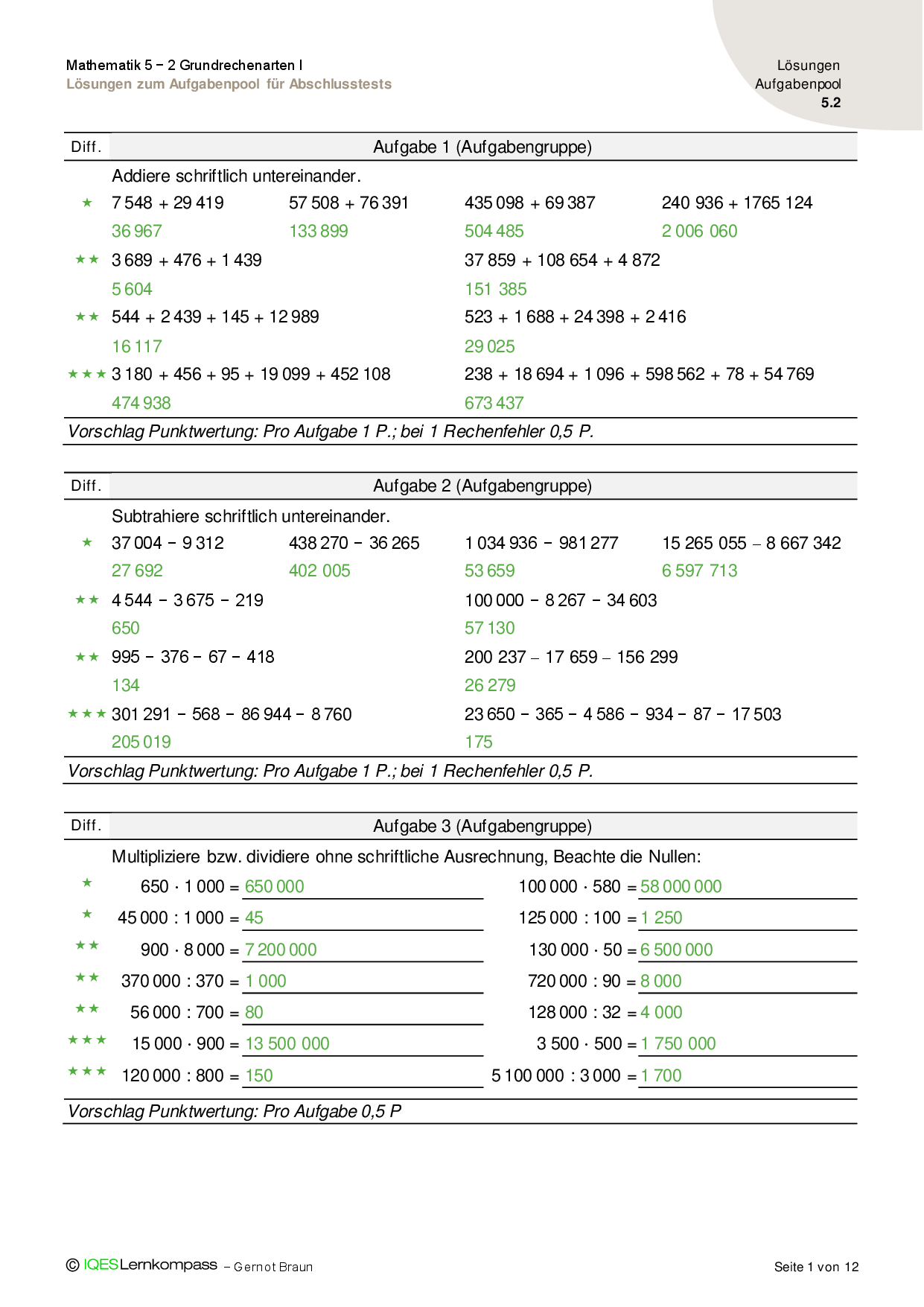 5.2 Grundrechenarten 1 – Lösungen zum Aufgabenpool für Abschlusstests