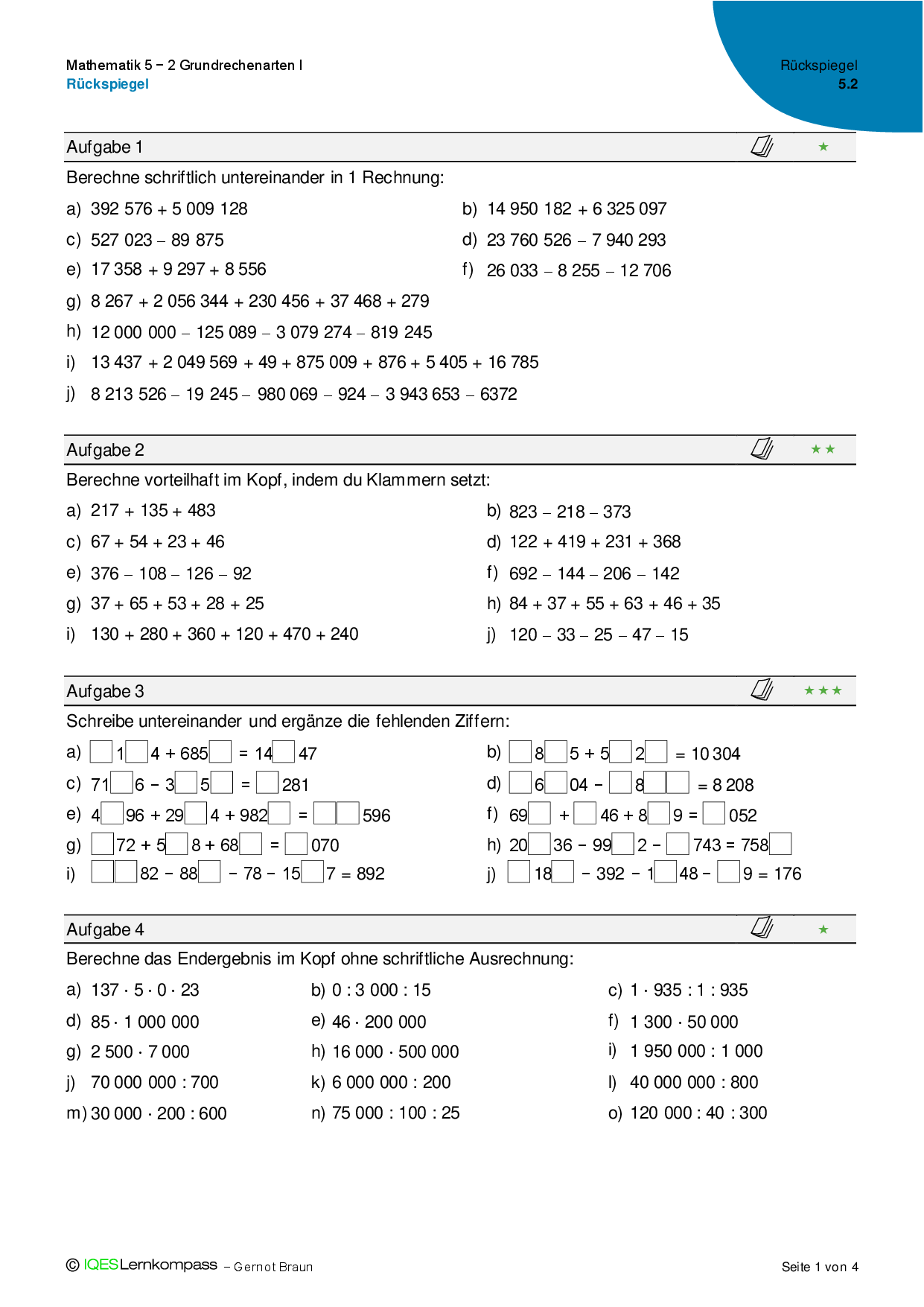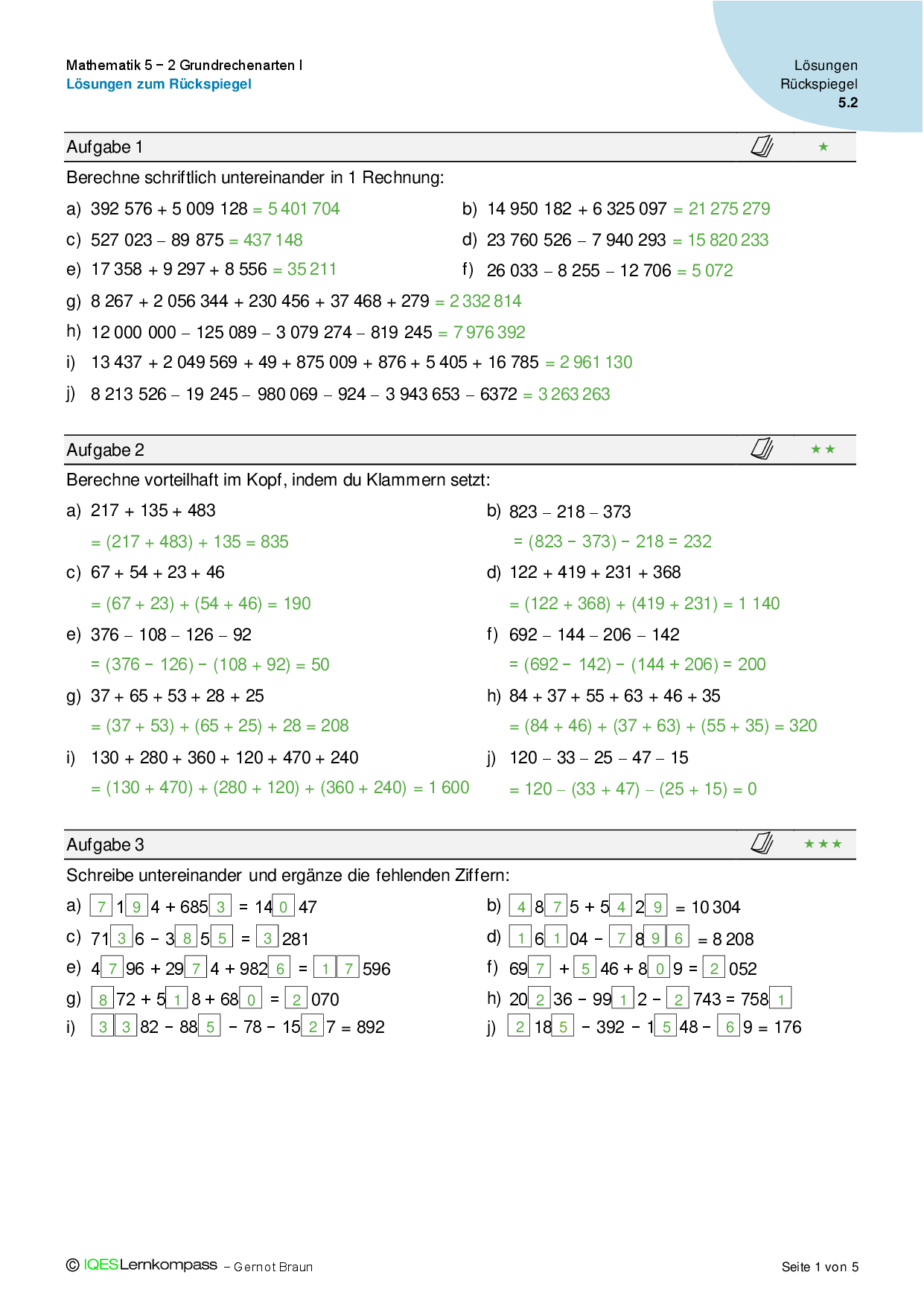 5.2 Grundrechenarten 1 – Lösungen zum Rückspiegel