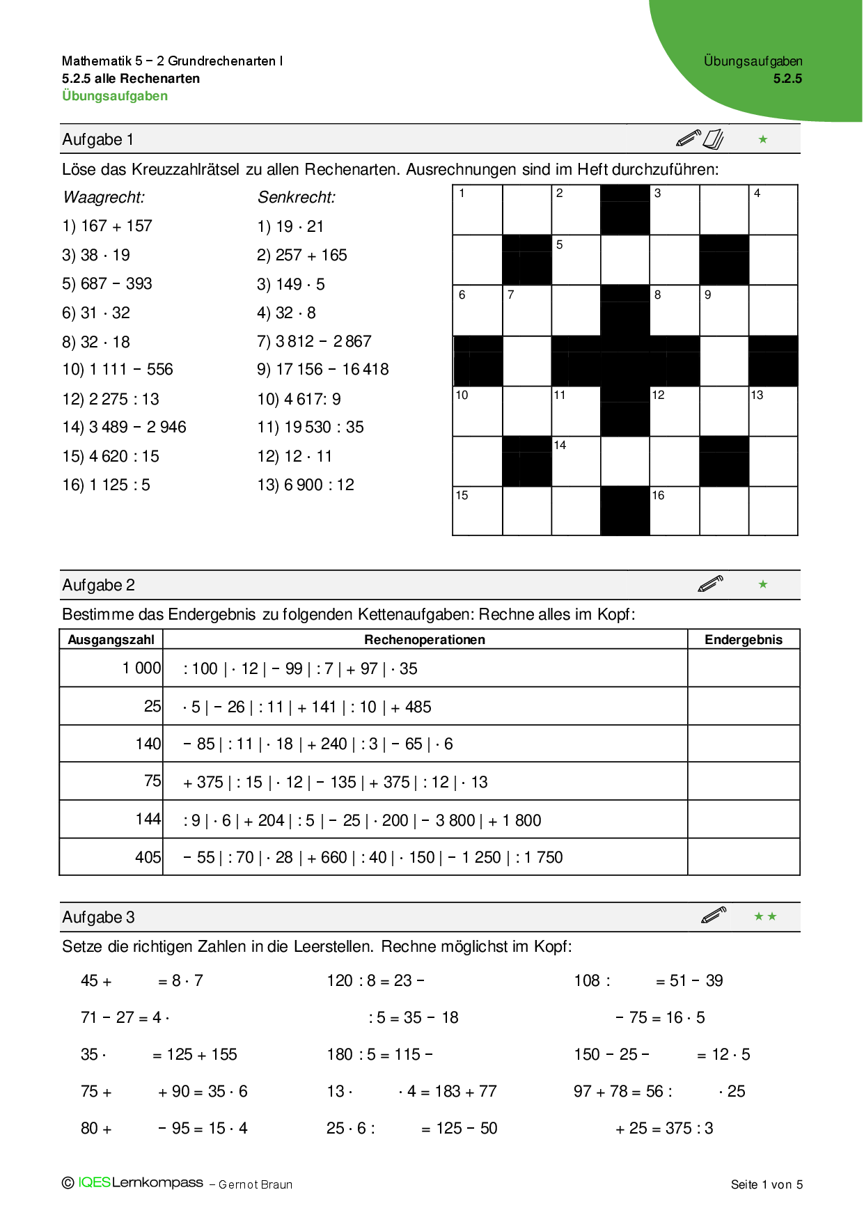 5.2.5 Aufgaben zu allen Rechenarten – Übungsaufgaben