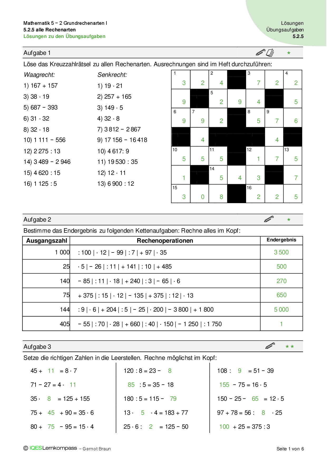 5.2.5 Aufgaben zu allen Rechenarten – Übungsaufgaben mit Lösungen