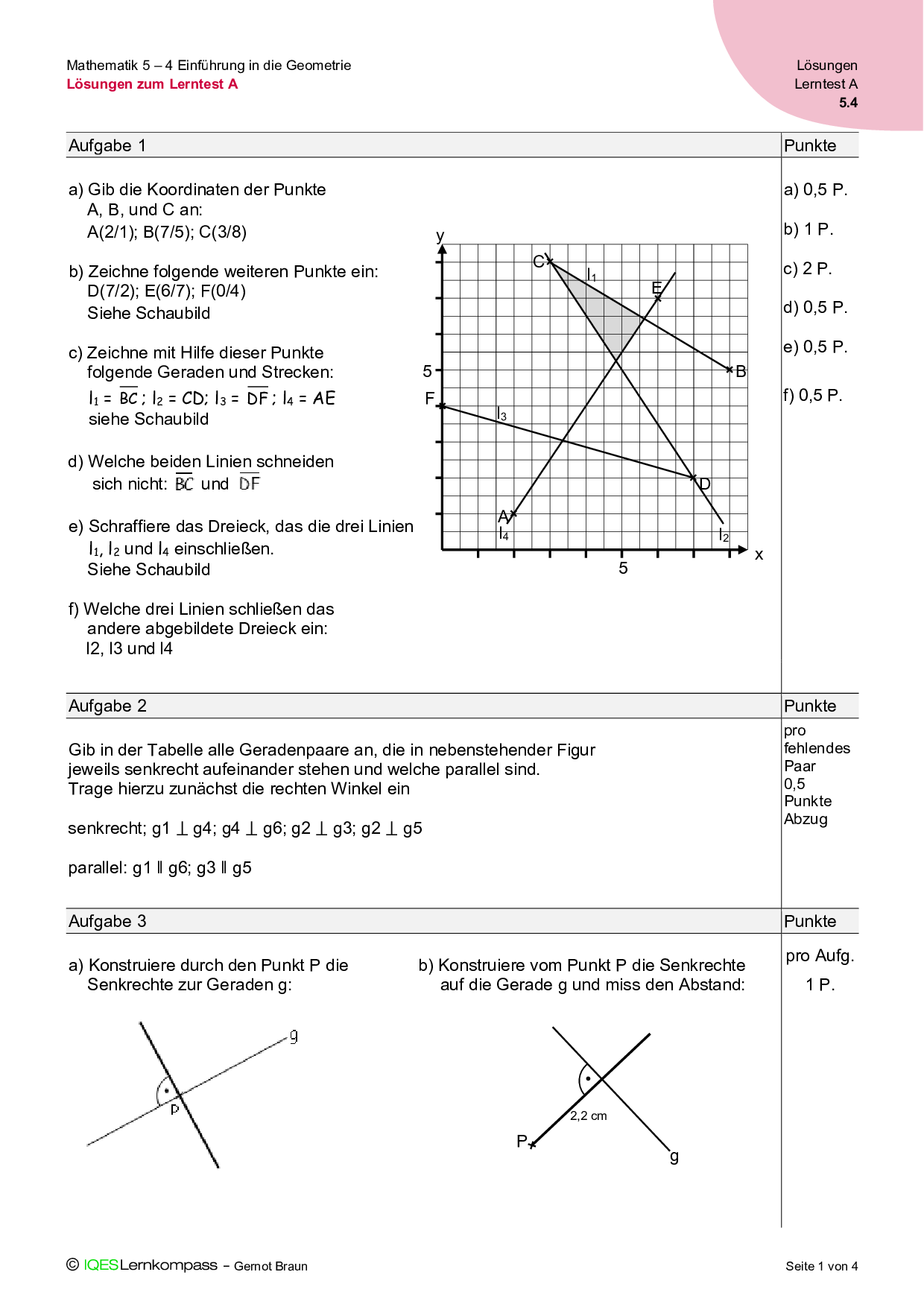 5.4 Einführung in die Geometrie – Lösungen zum Lerntest A