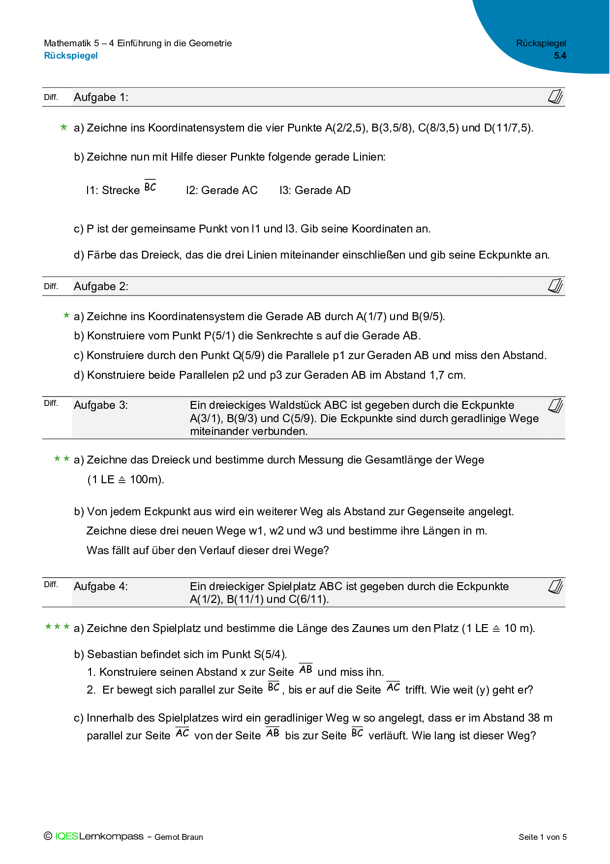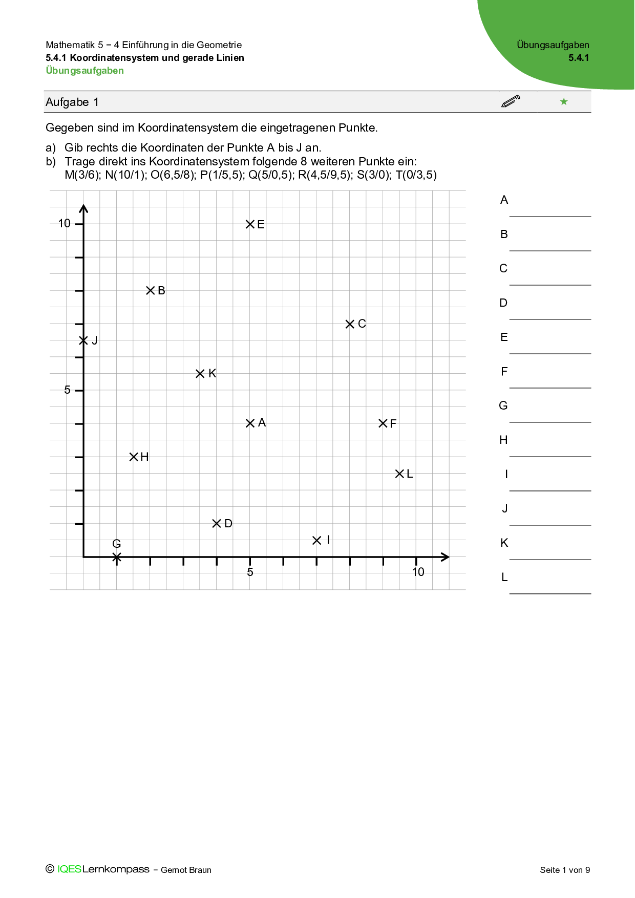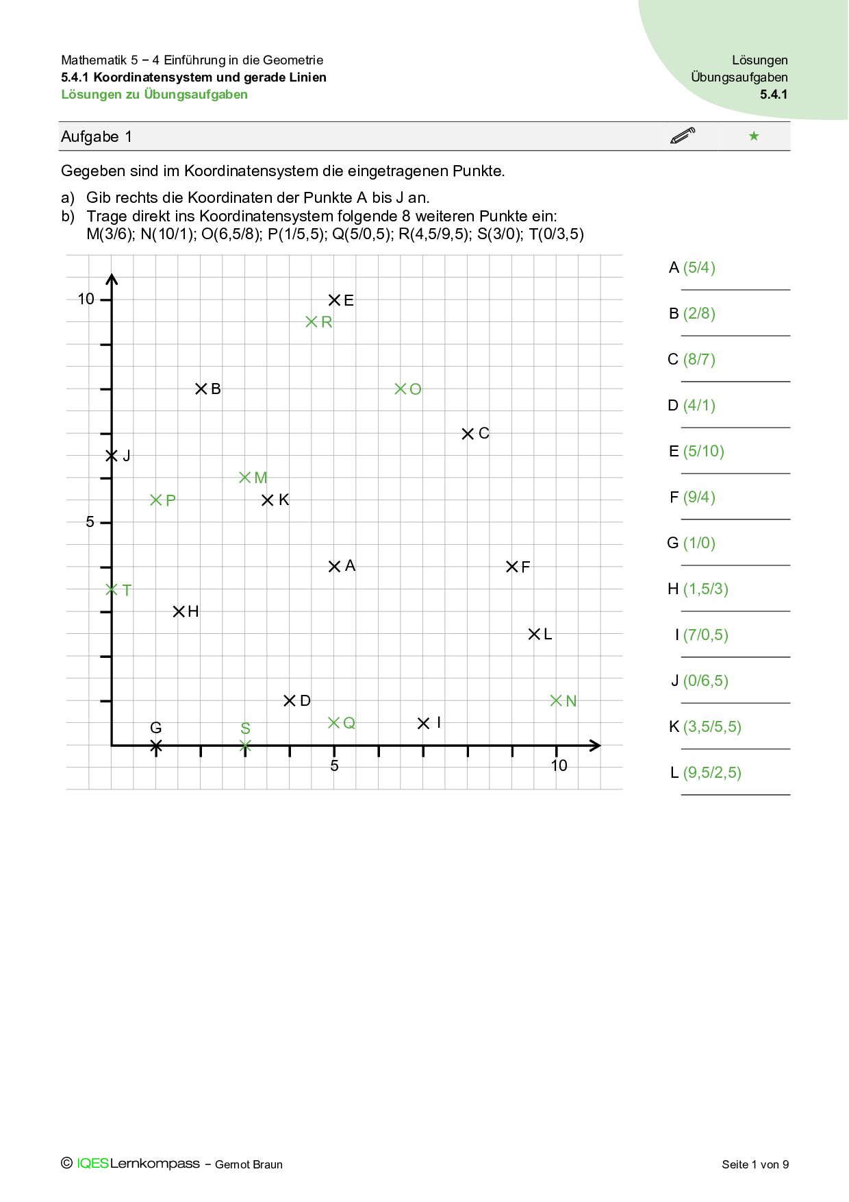 5.4.1 Koordinatensystem und gerade Linien – Übungsaufgaben mit Lösungen