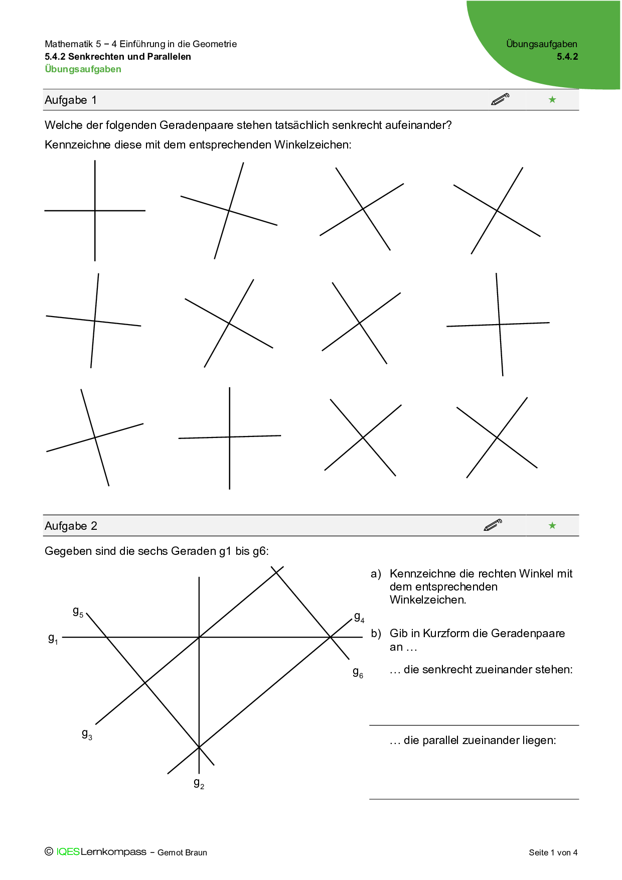 5.4.2 Senkrechten und Parallelen – Übungsaufgaben mit Lösungen