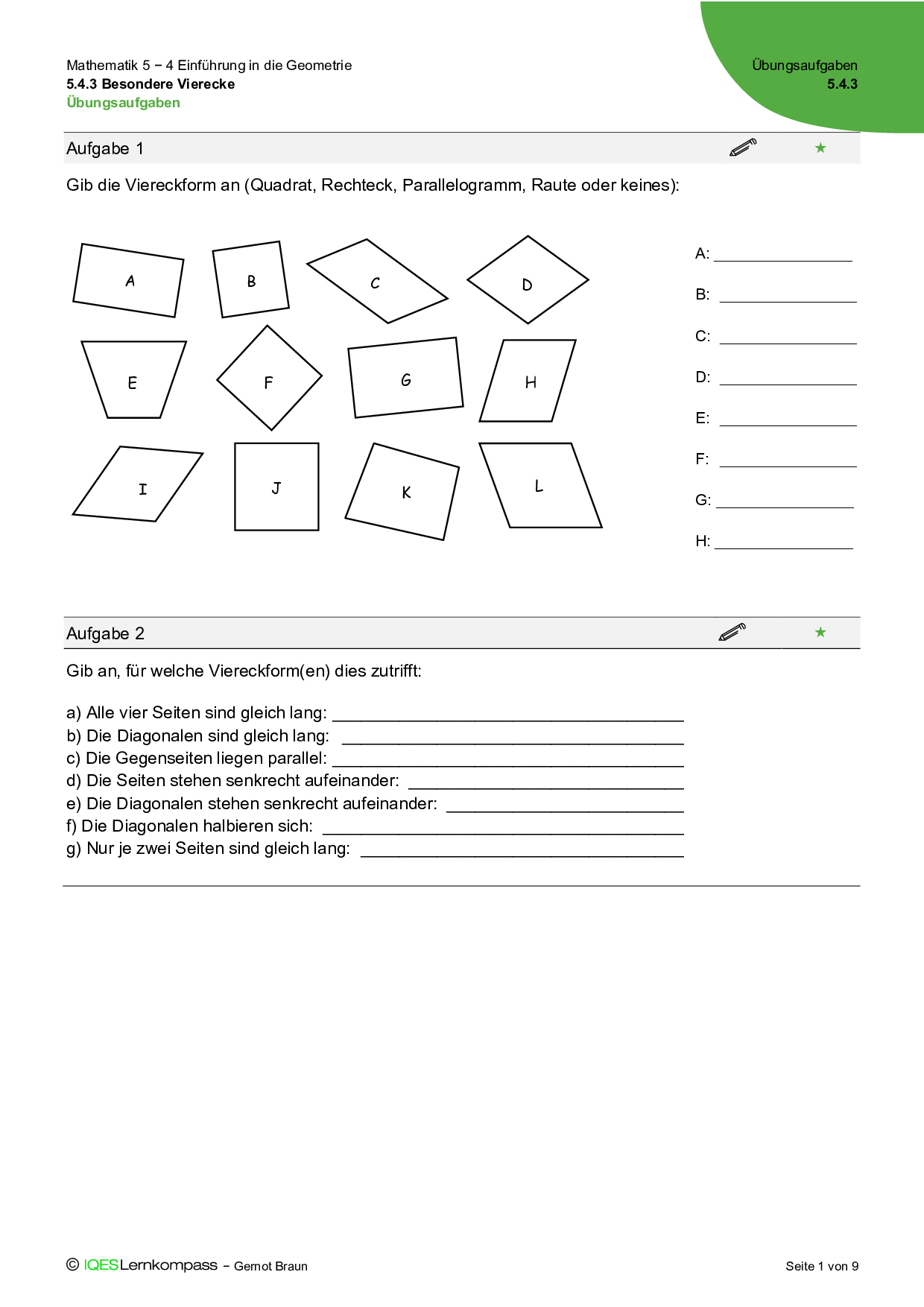 5.4.3 Besondere Vierecke – Übungsaufgaben