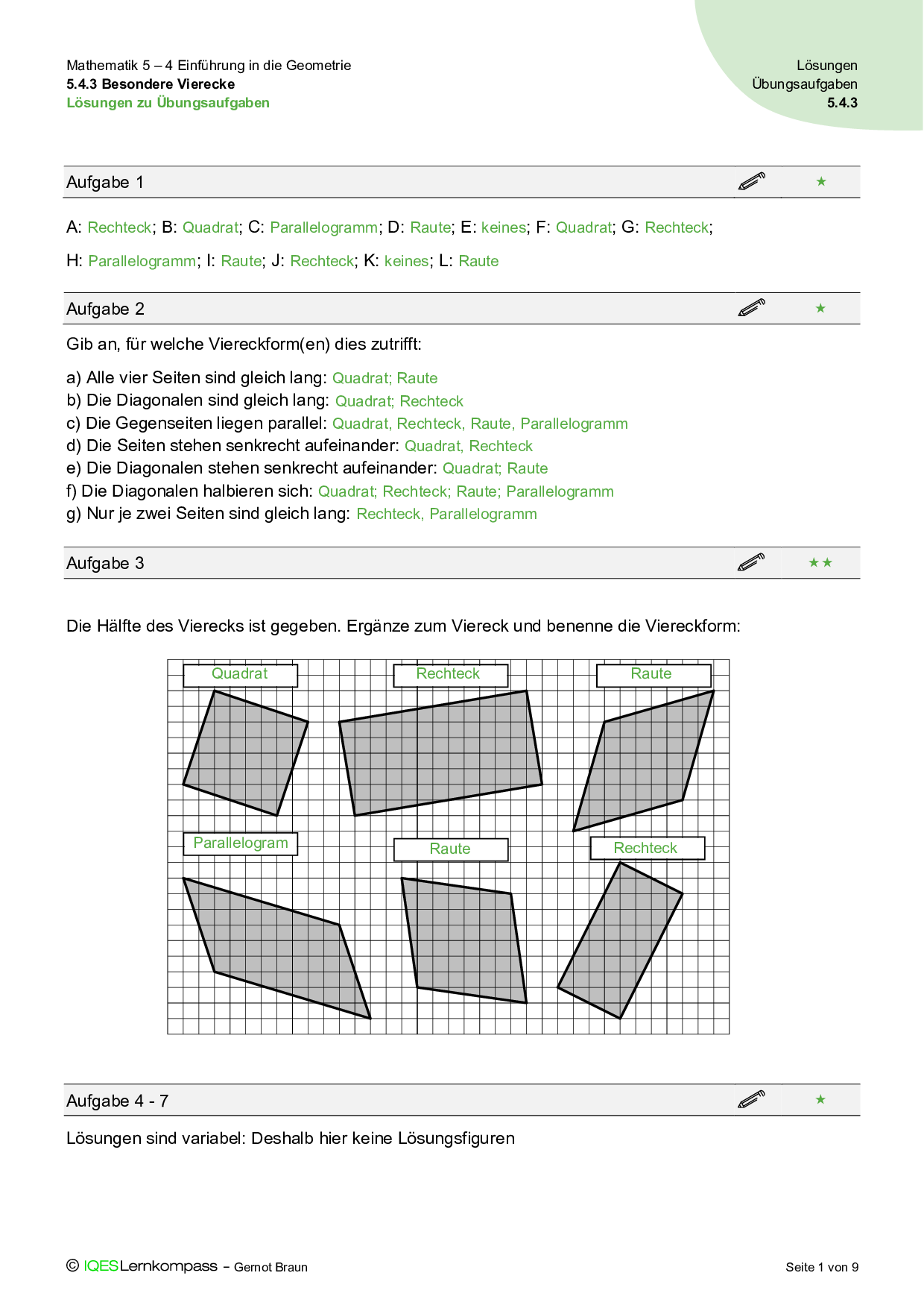 5.4.3 Besondere Vierecke – Übungsaufgaben mit Lösungen