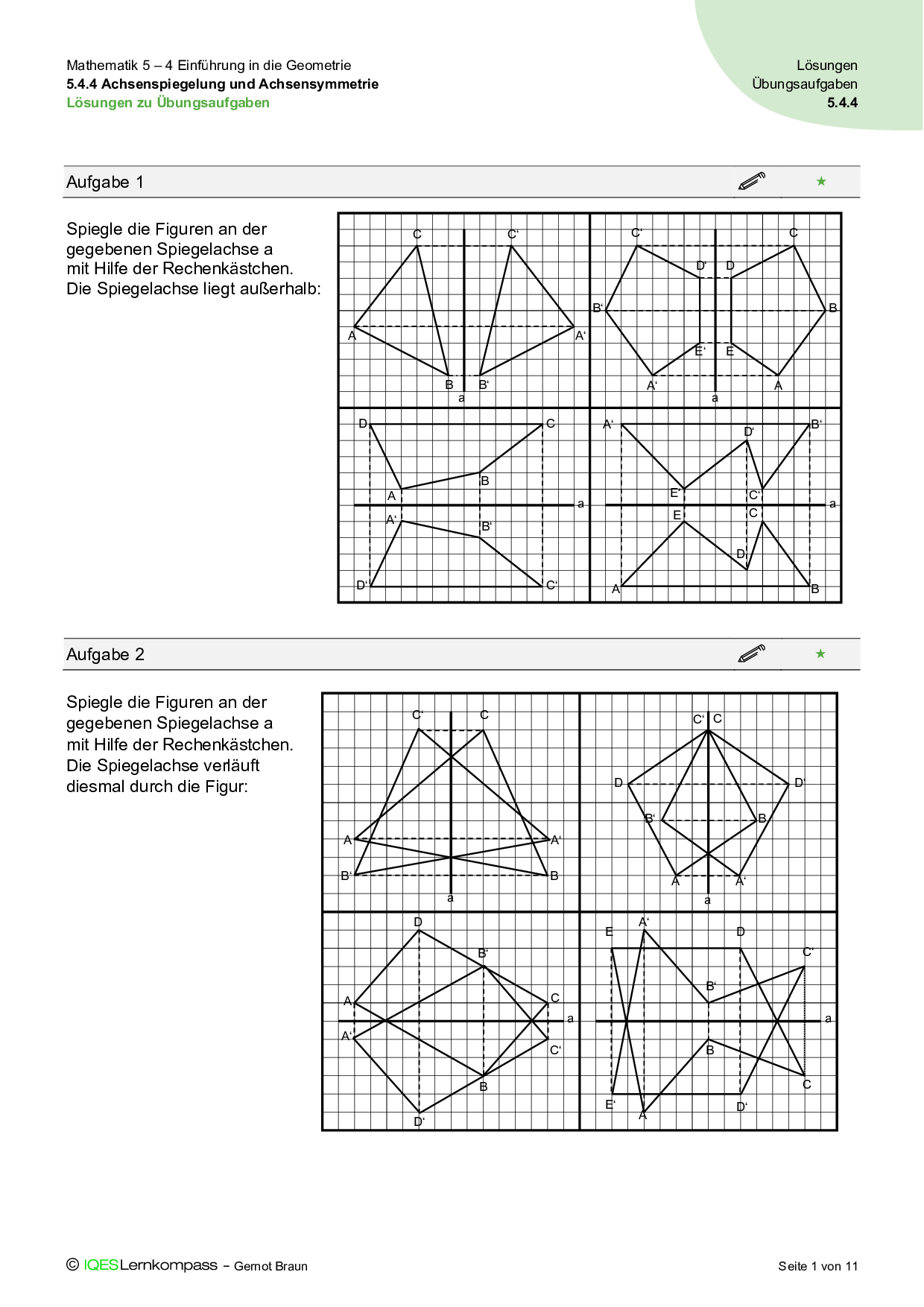 5.4.4 Achsenspiegelung und Achsensymmetrie – Übungsaufgaben mit Lösungen