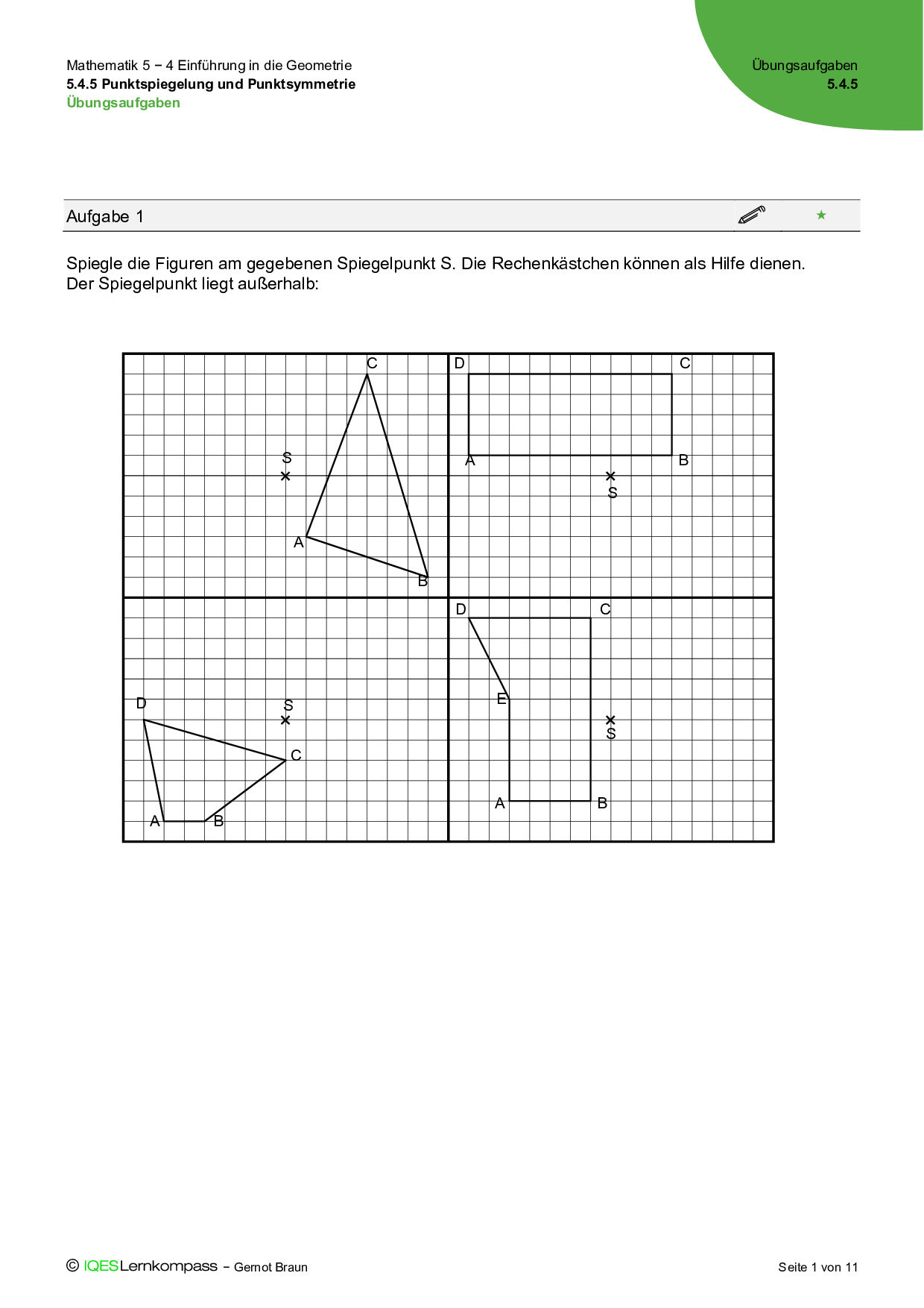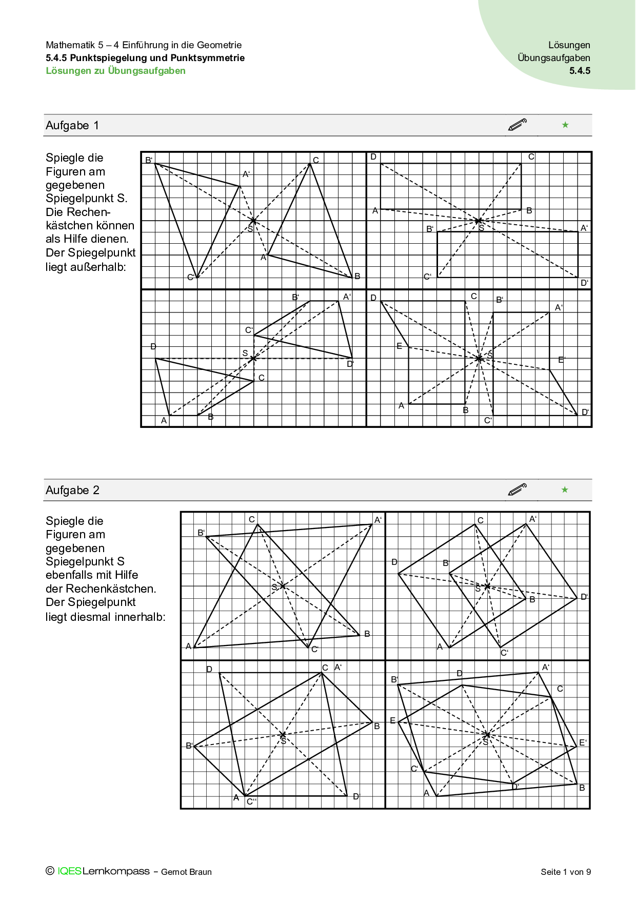 5.4.5 Punktspiegelung und Punktsymmetrie – Übungsaufgaben mit Lösungen