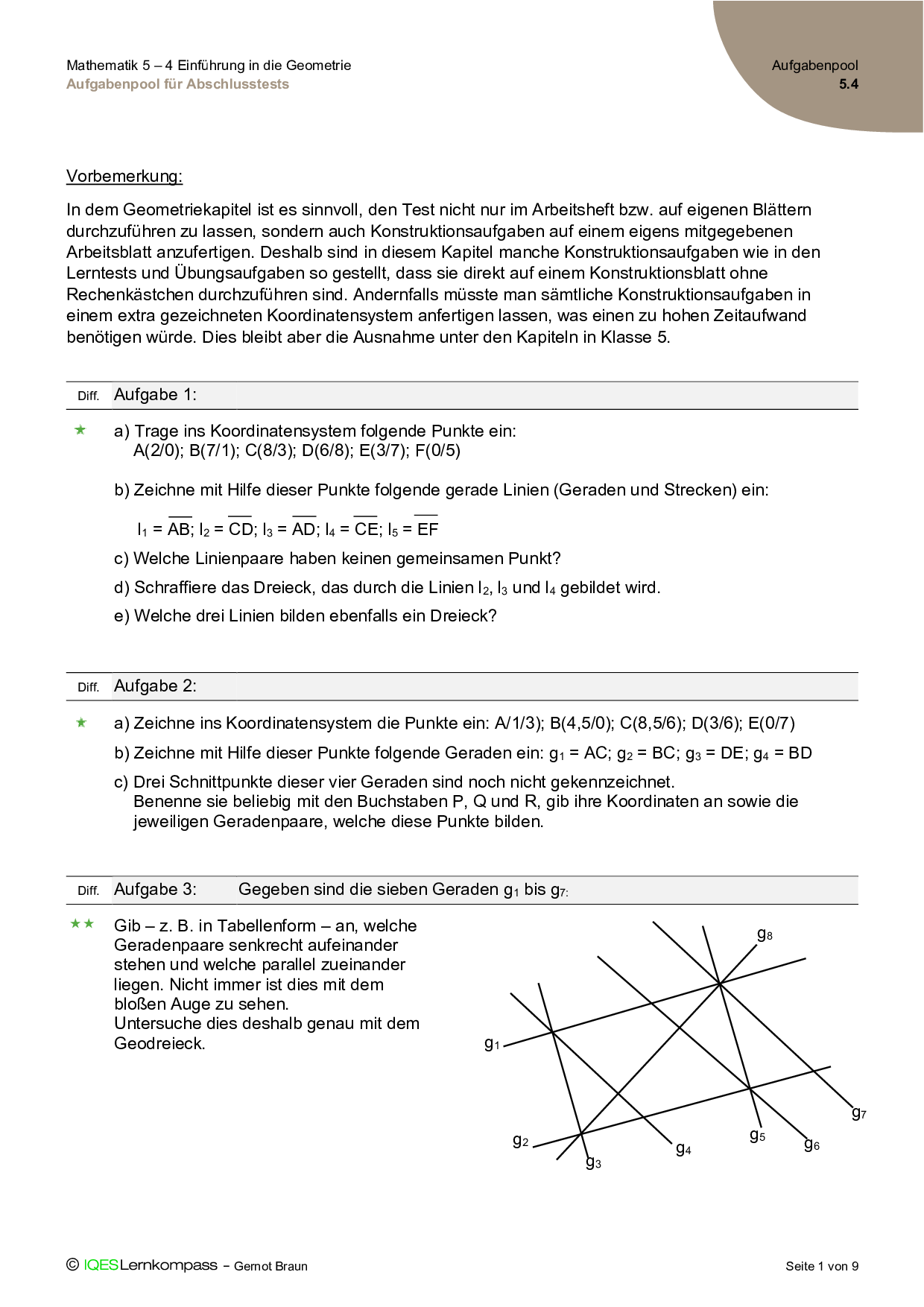 5.4 Einführung in die Geometrie – Aufgabenpool für Abschlusstests