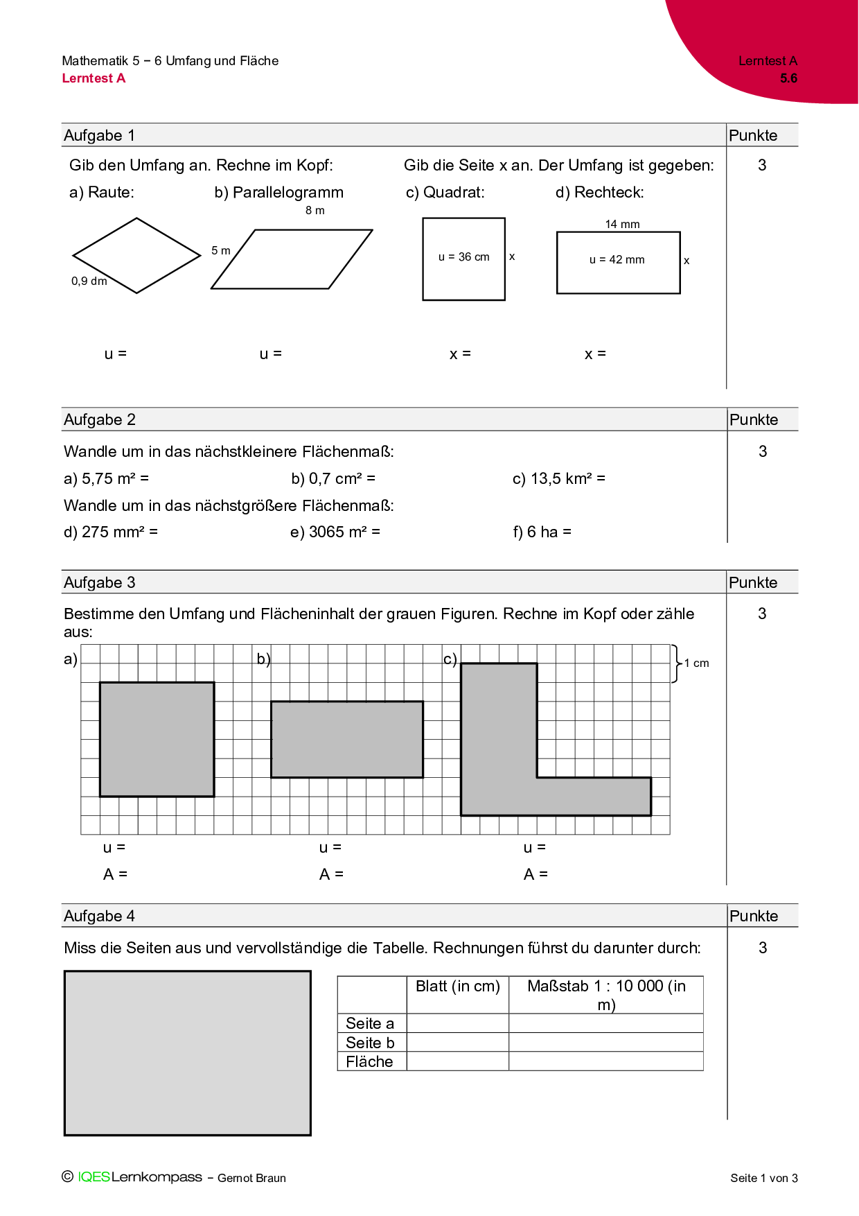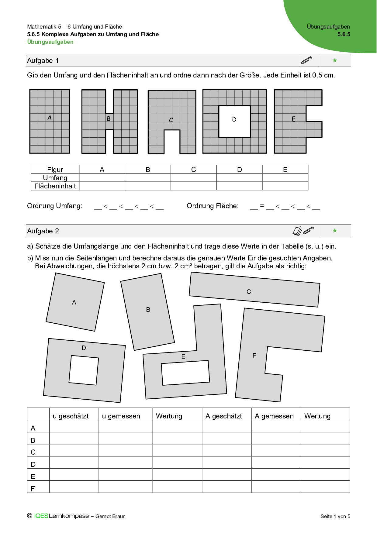 Lernziele und Inhalte: 5.6 Umfang und Fläche