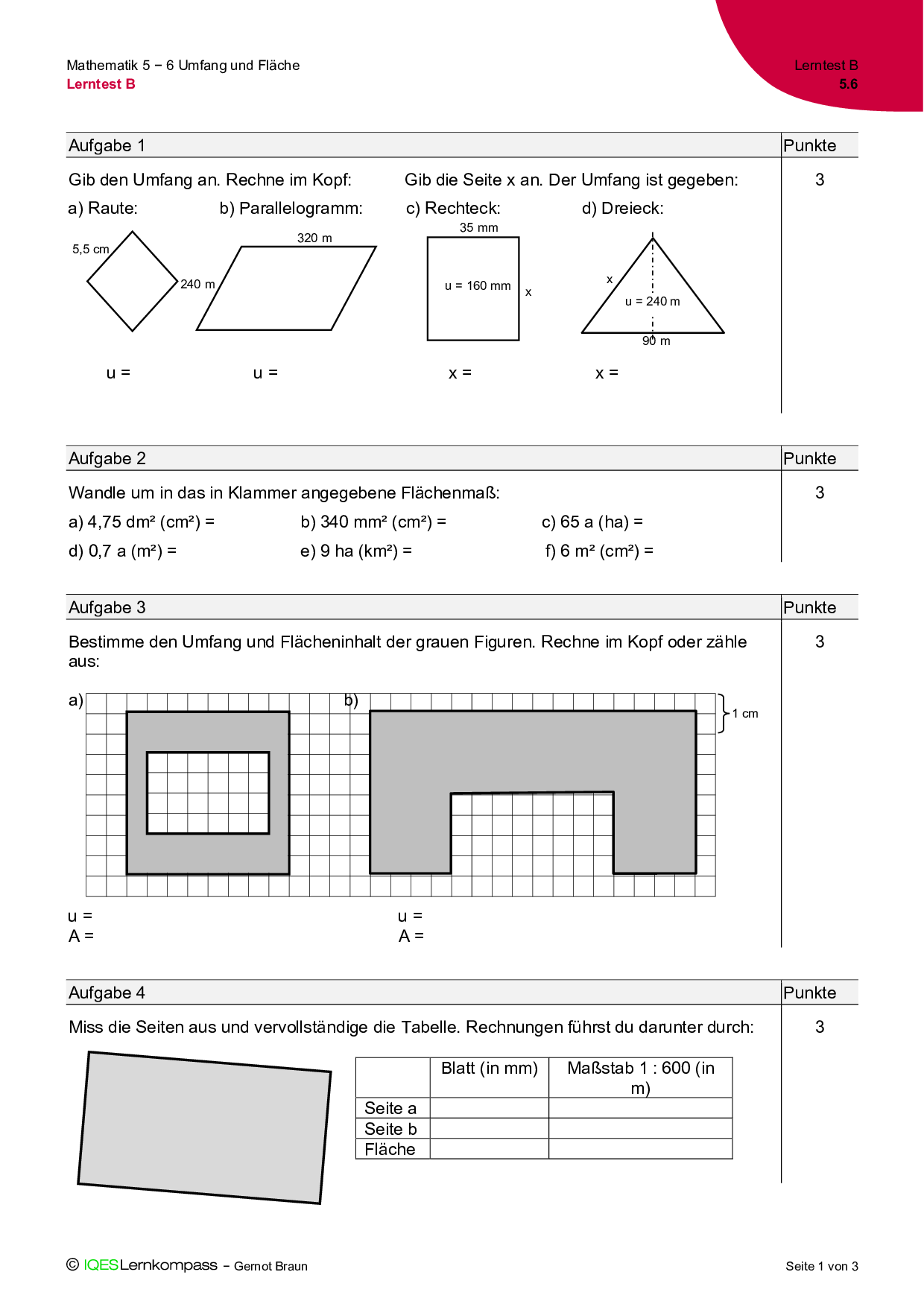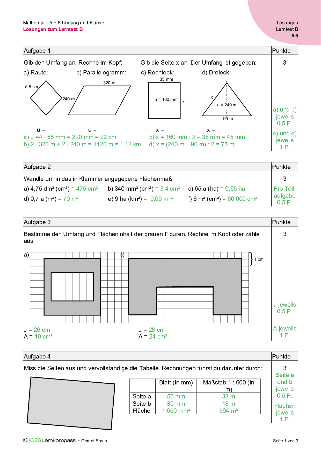5.6 Umfang und Fläche – Lösungen zum Lerntest B