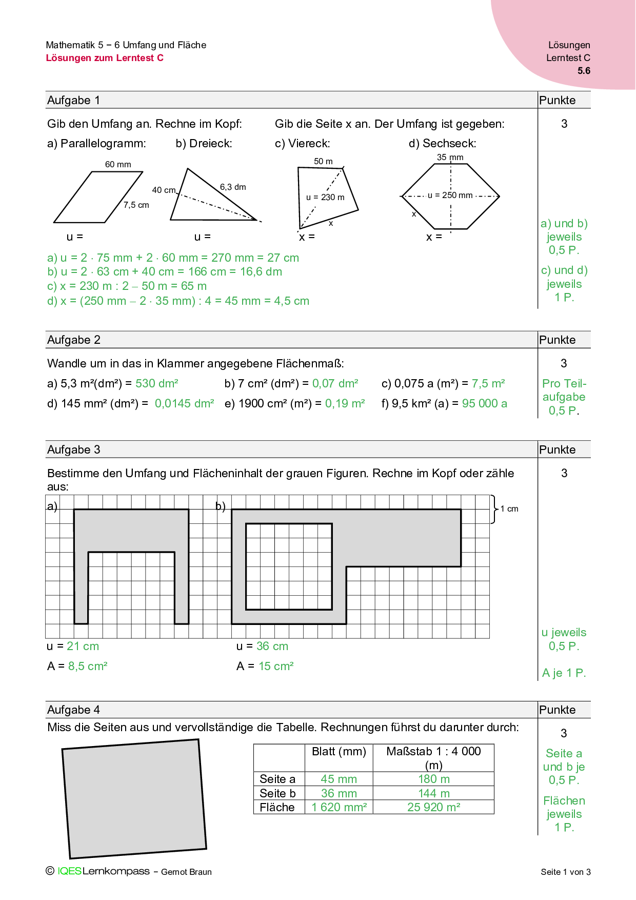 5.6 Umfang und Fläche – Lösungen zum Lerntest C