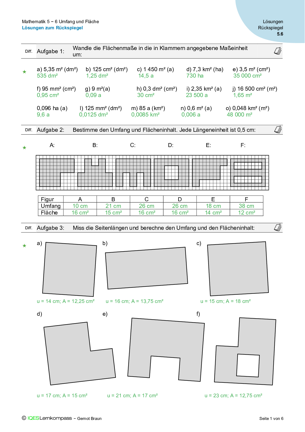 5.6 Umfang und Fläche – Lösungen zum Rückspiegel