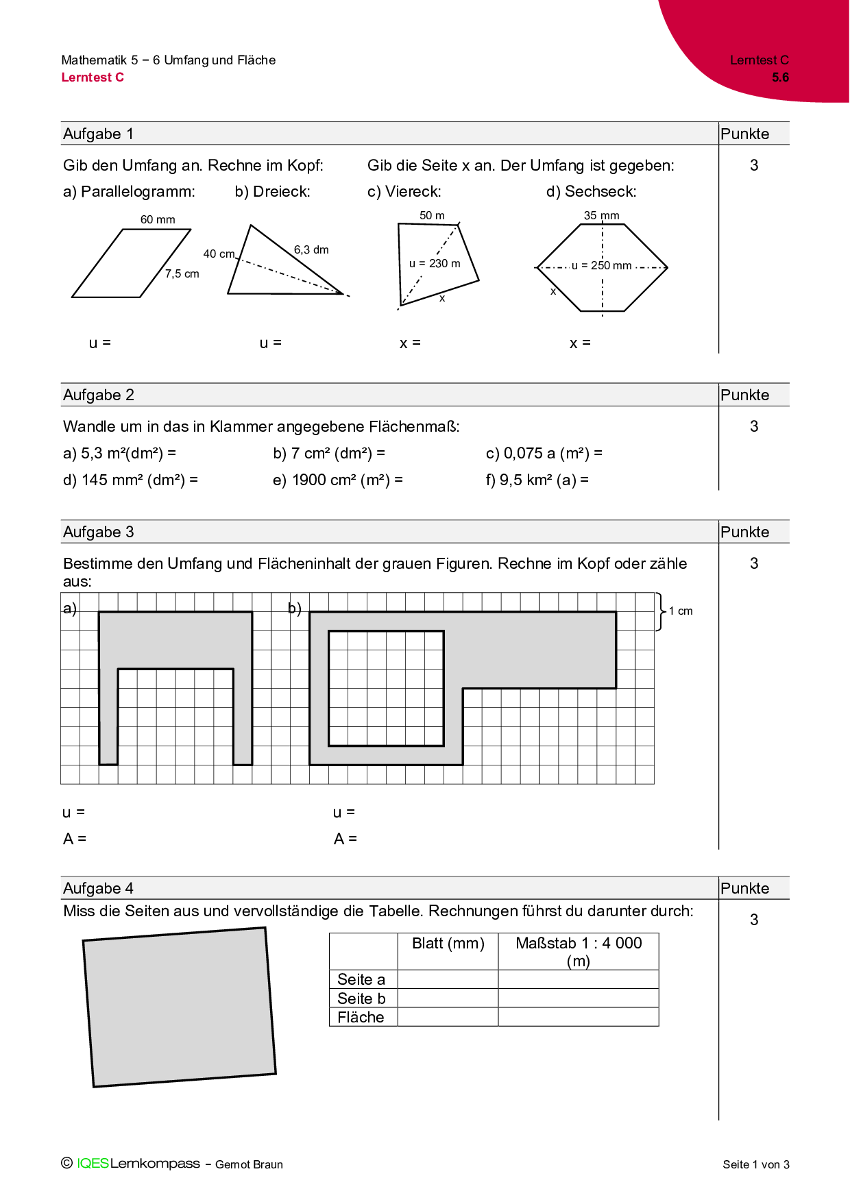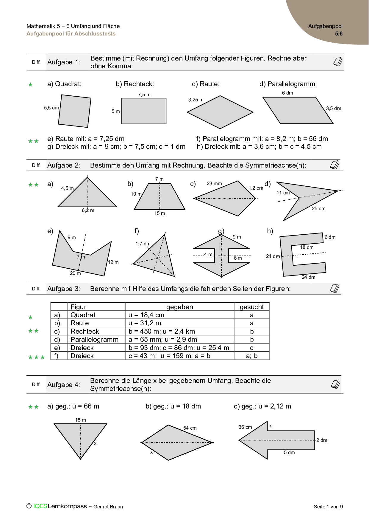 5.6 Umfang und Fläche – Aufgabenpool für Abschlusstests