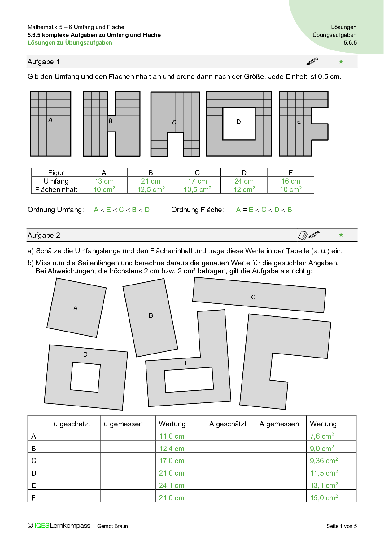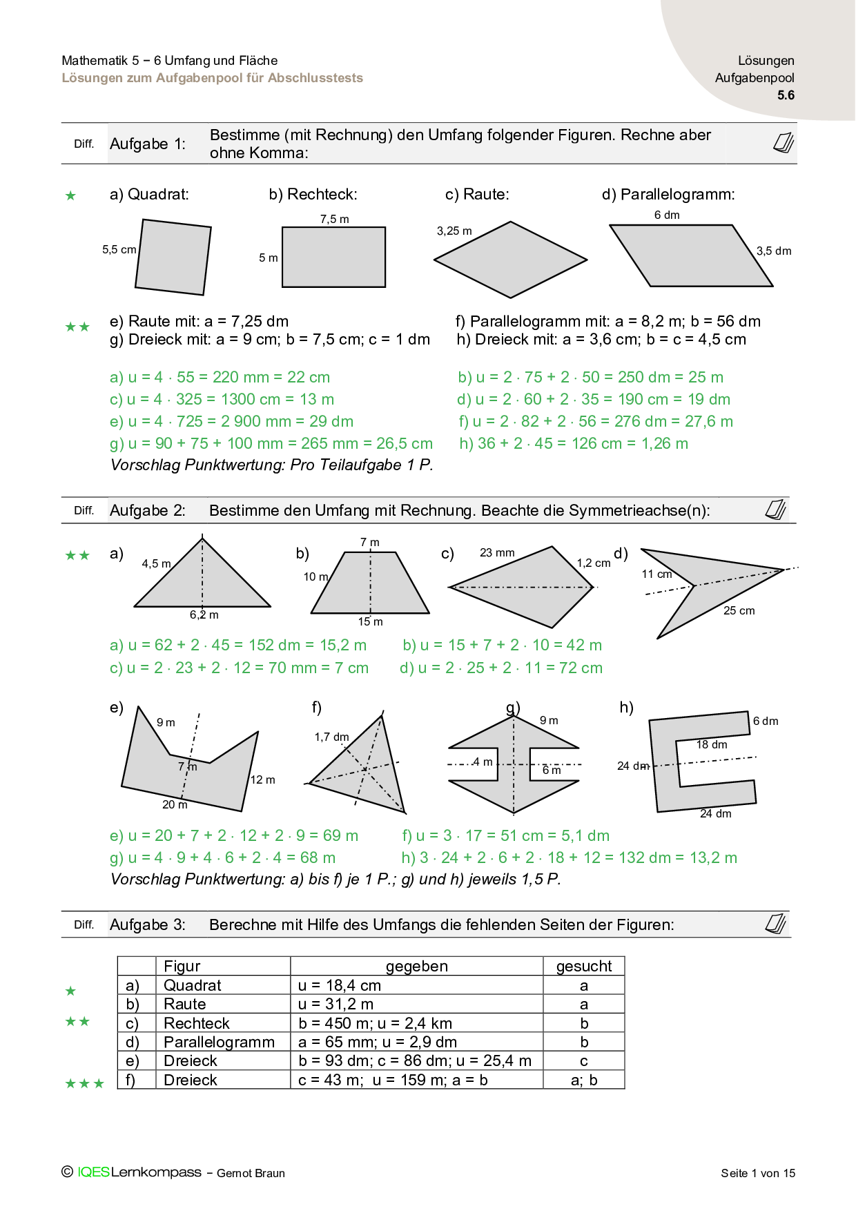 5.6 Umfang und Fläche – Lösungen zum Aufgabenpool für Abschlusstests