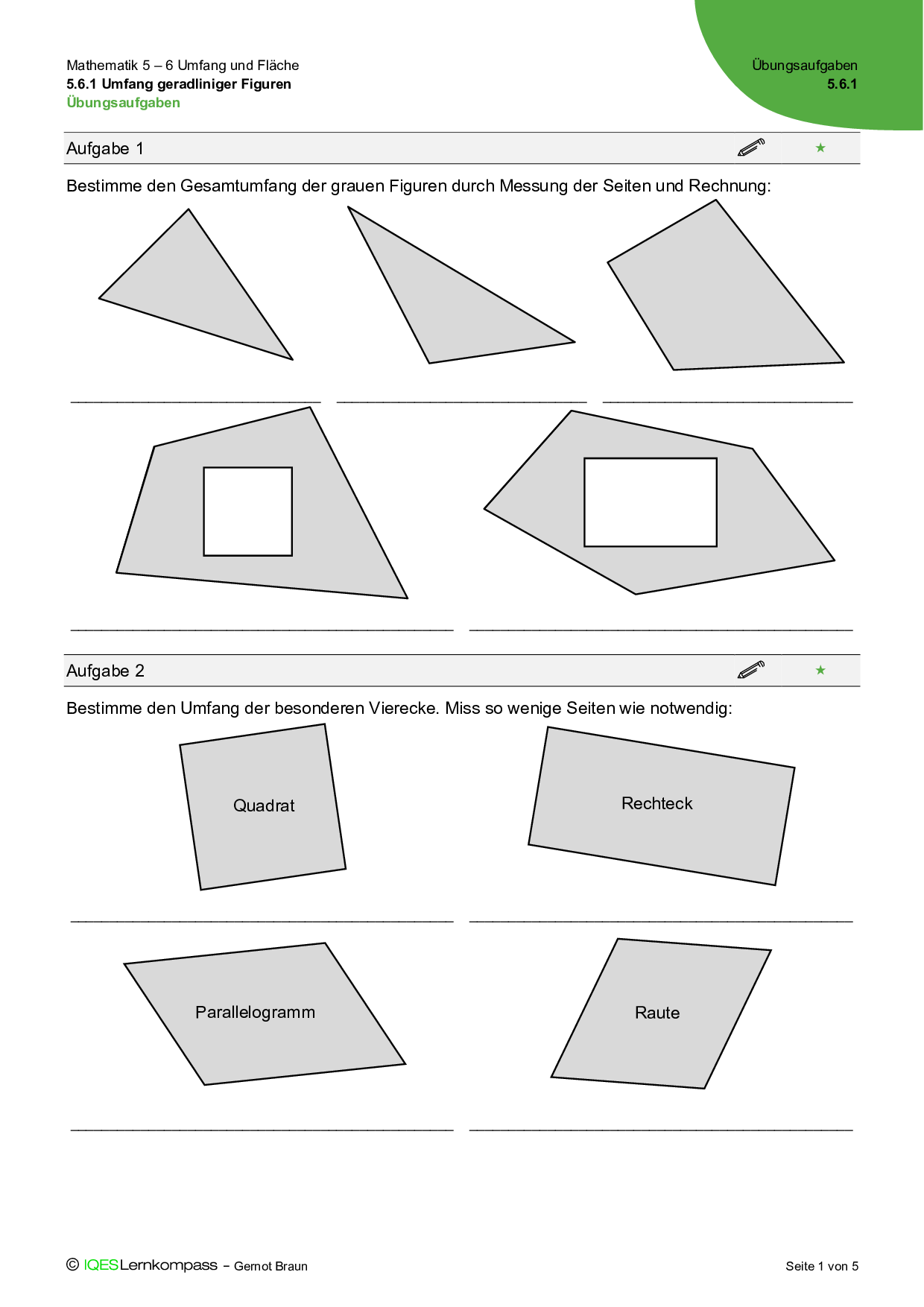 5.6.1 Umfang geradliniger Figuren – Übungsaufgaben mit Lösungen