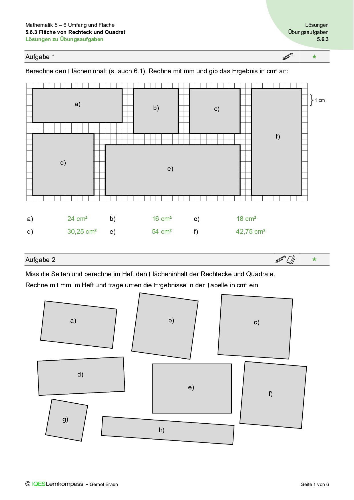 5.6.3 Flächeninhalt von Quadrat und Rechteck – Übungsaufgaben mit Lösungen