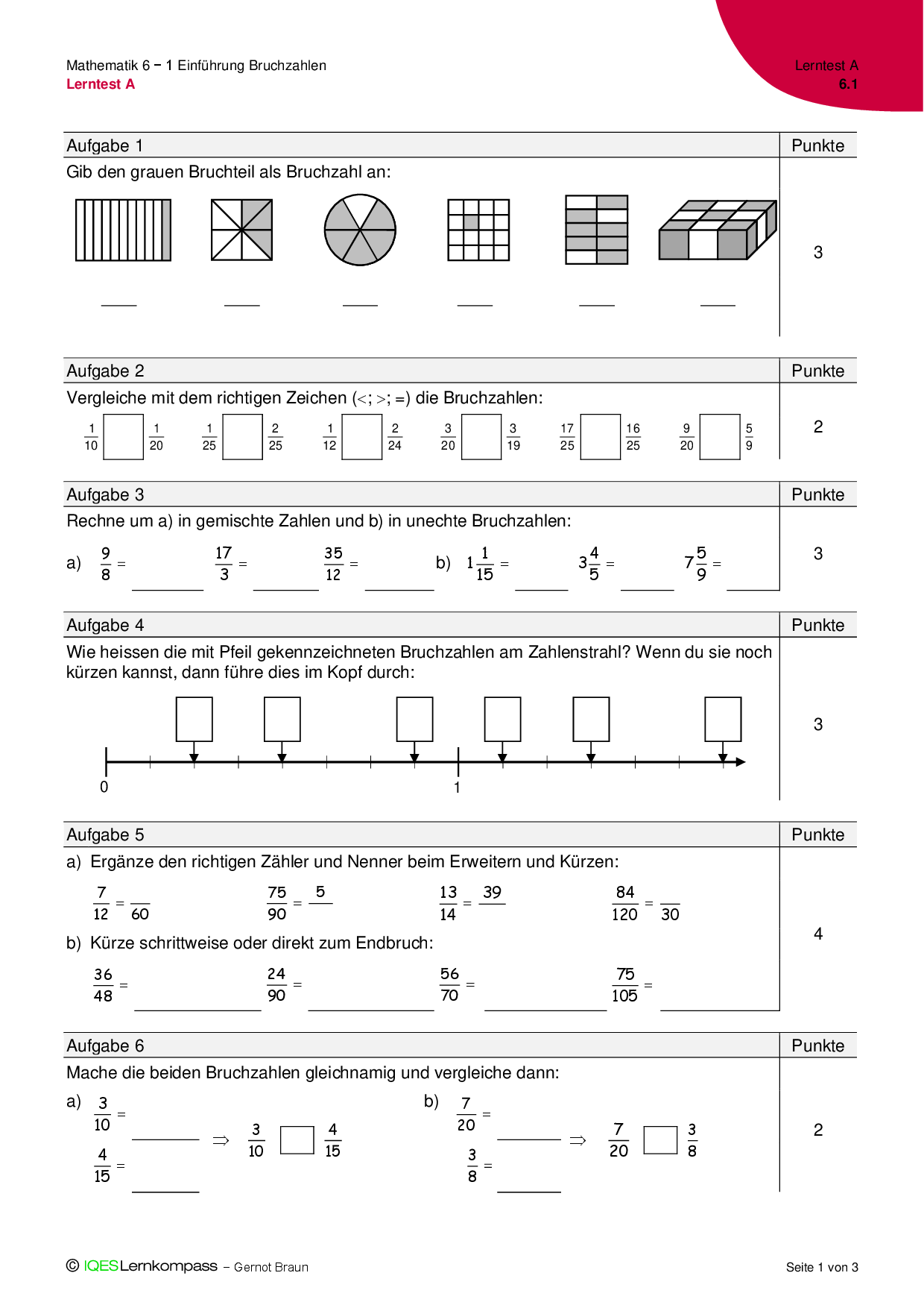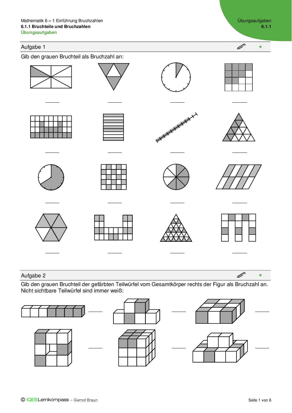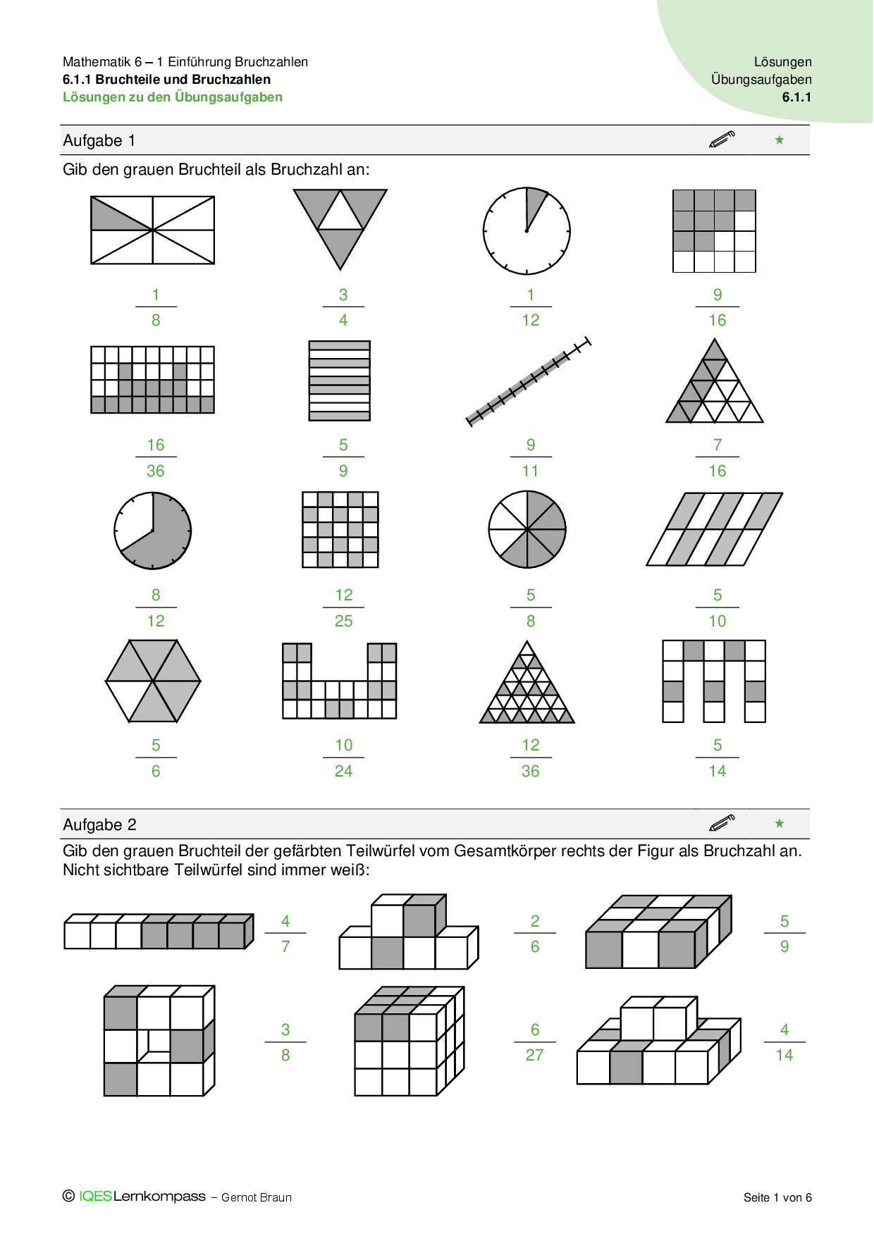 6.1.1 Bruchteile und Bruchzahlen – Übungsaufgaben mit Lösungen